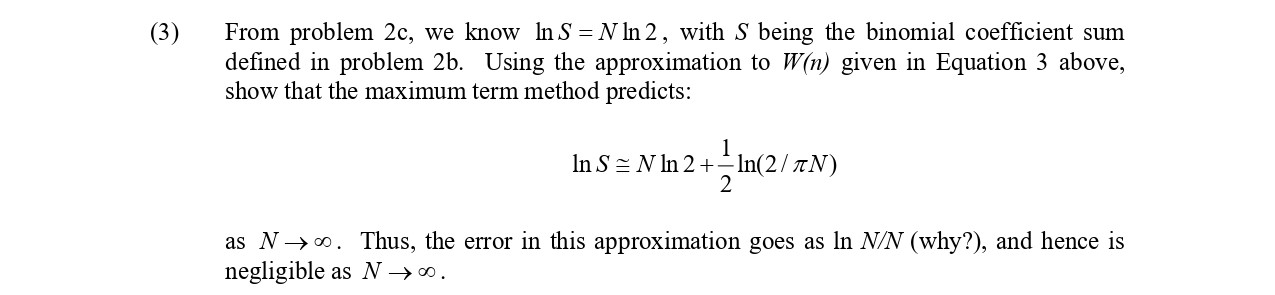 (3) From problem 2c, we know In S = N In 2, with S being the binom...