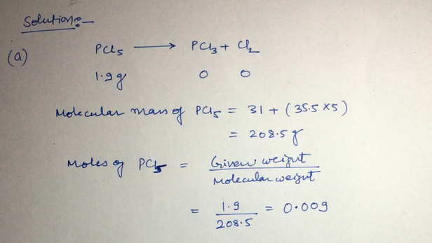 At temperatures above 500 K, phosphorous pentachloride dissociates ...