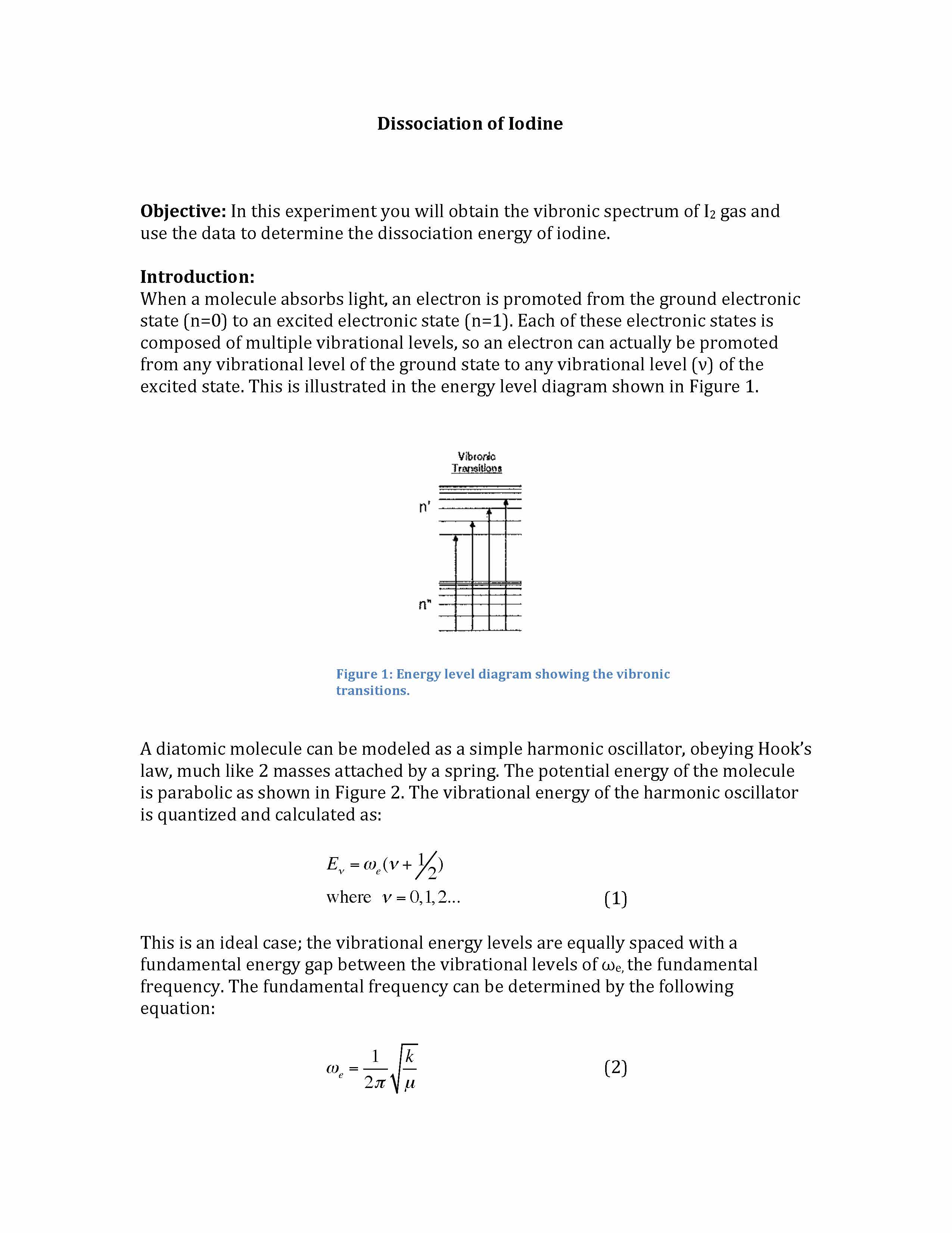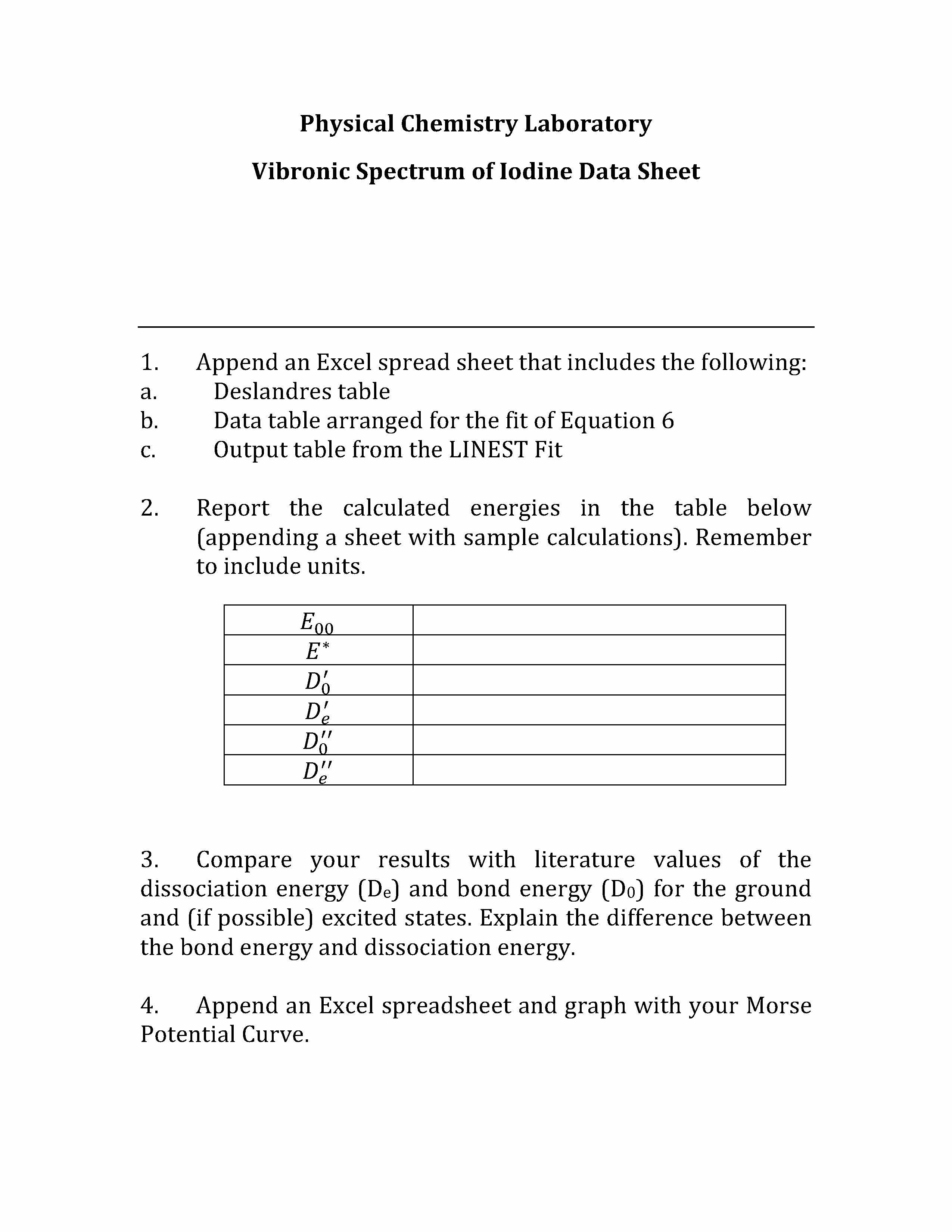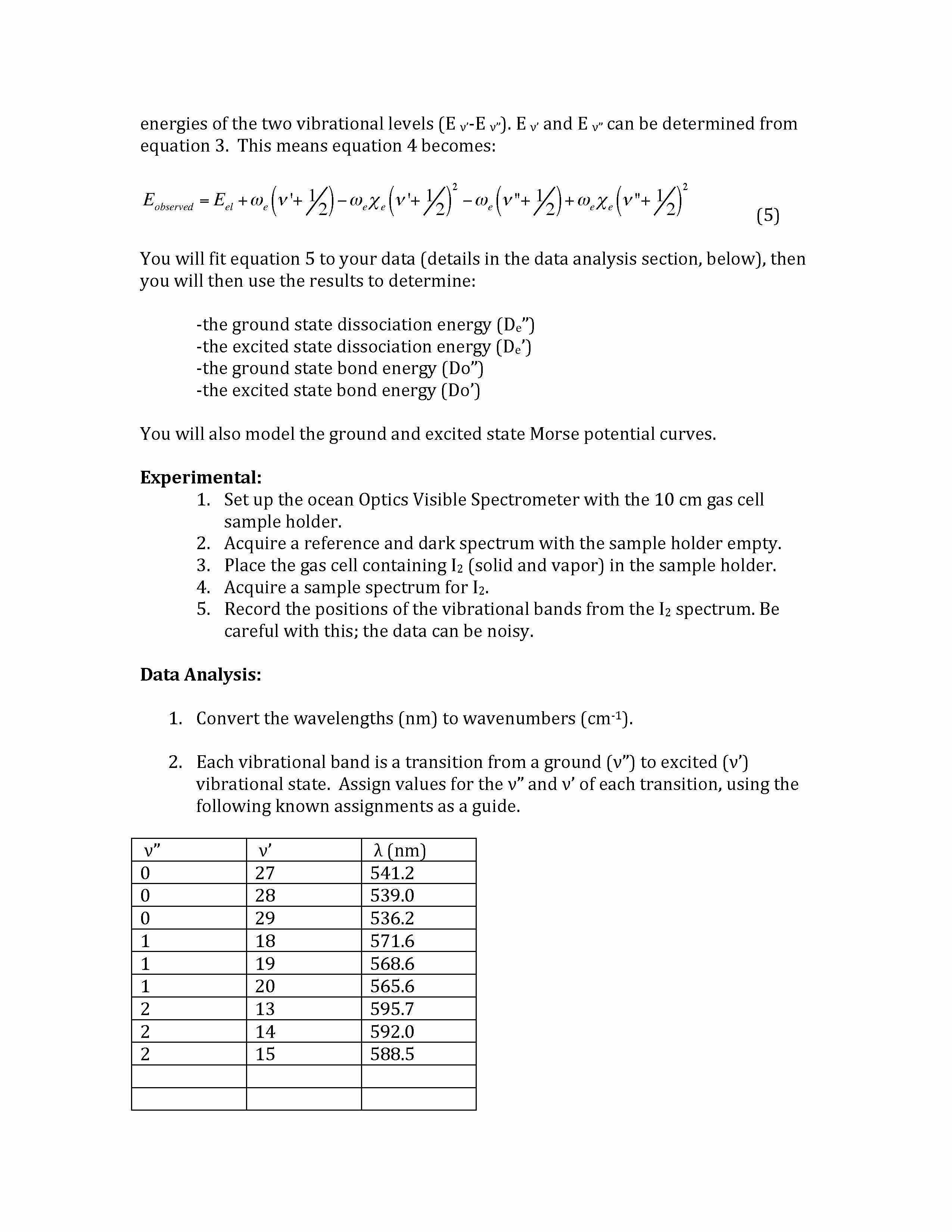 Physical Chemistry Laboratory Vibronic Spectrum of Iodine Data Sh...