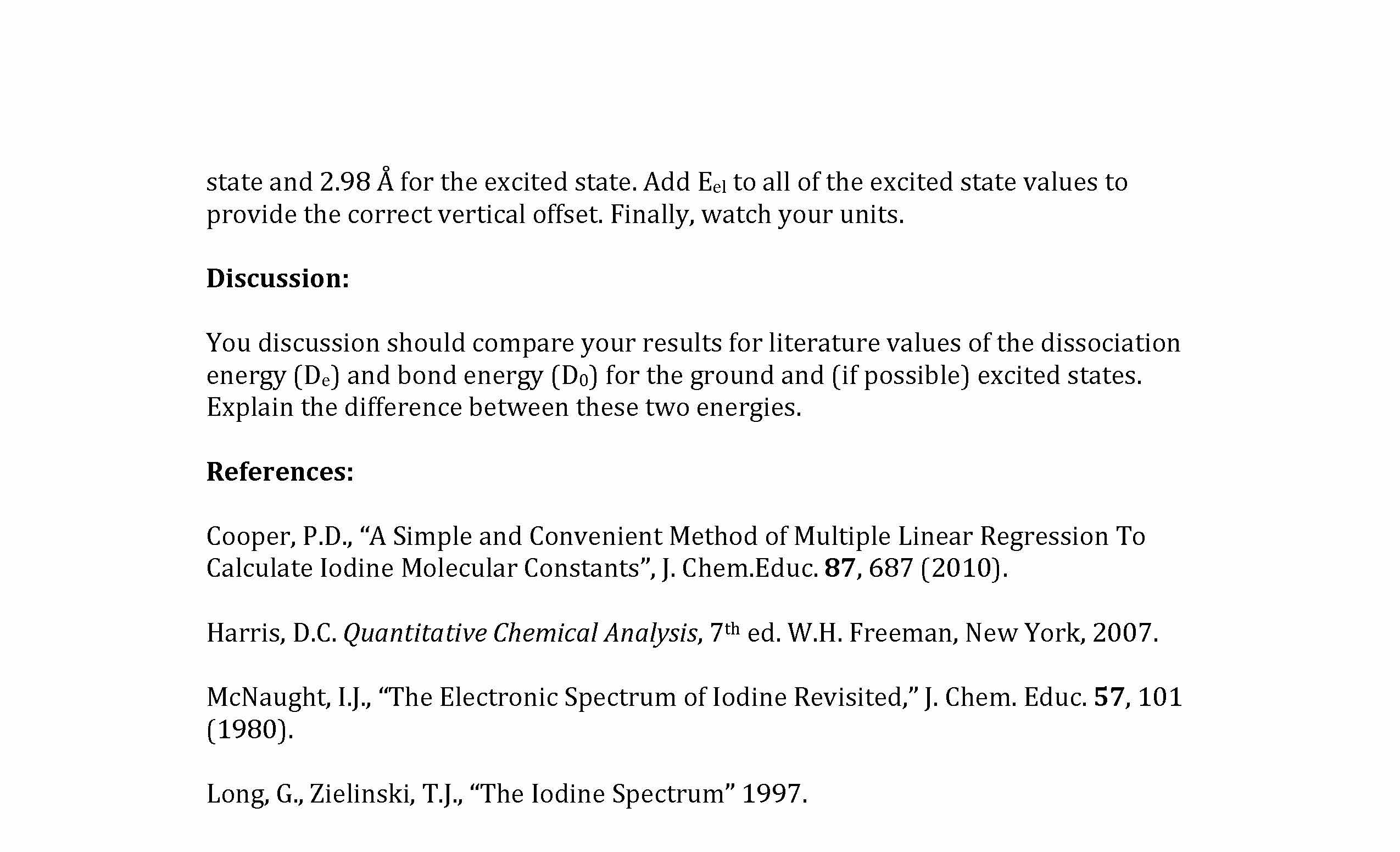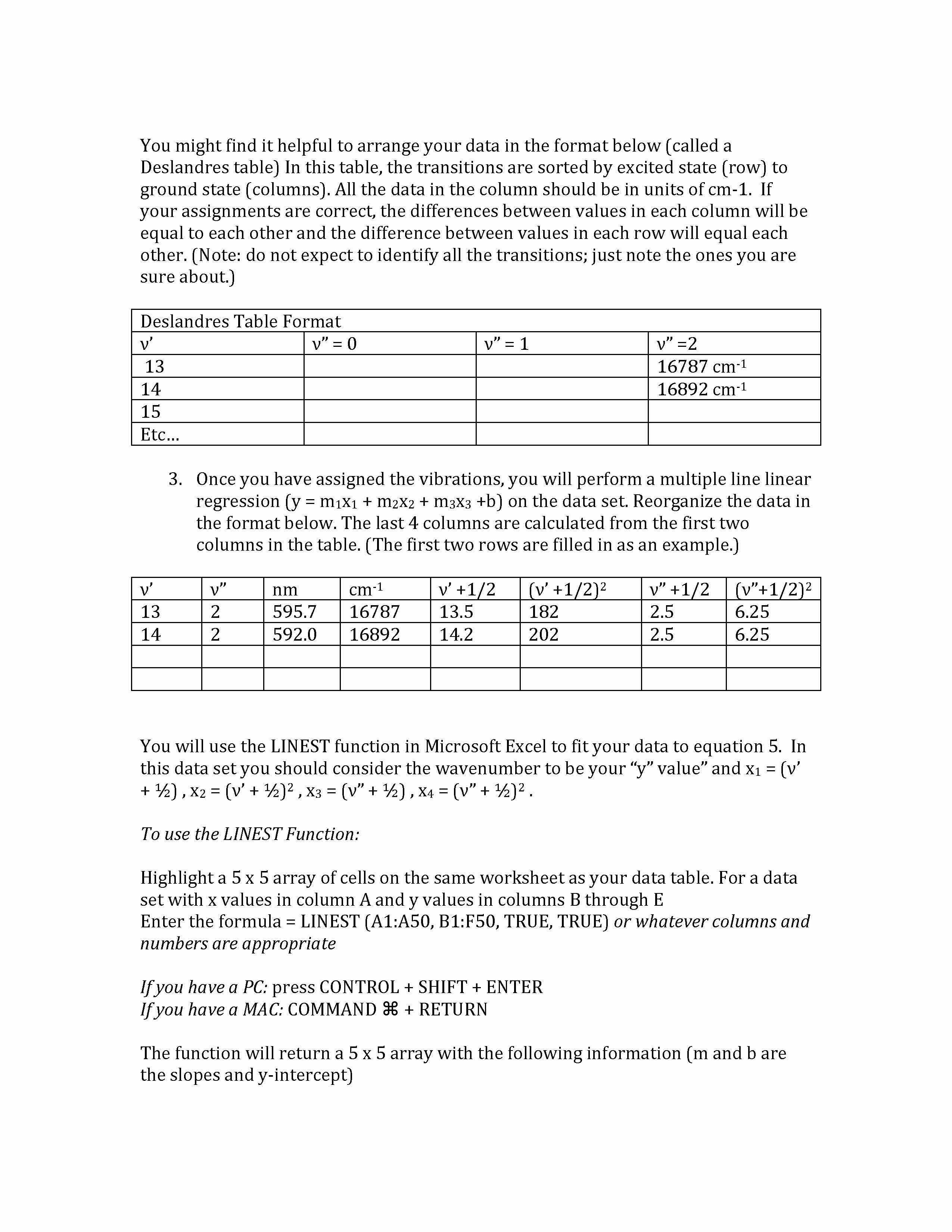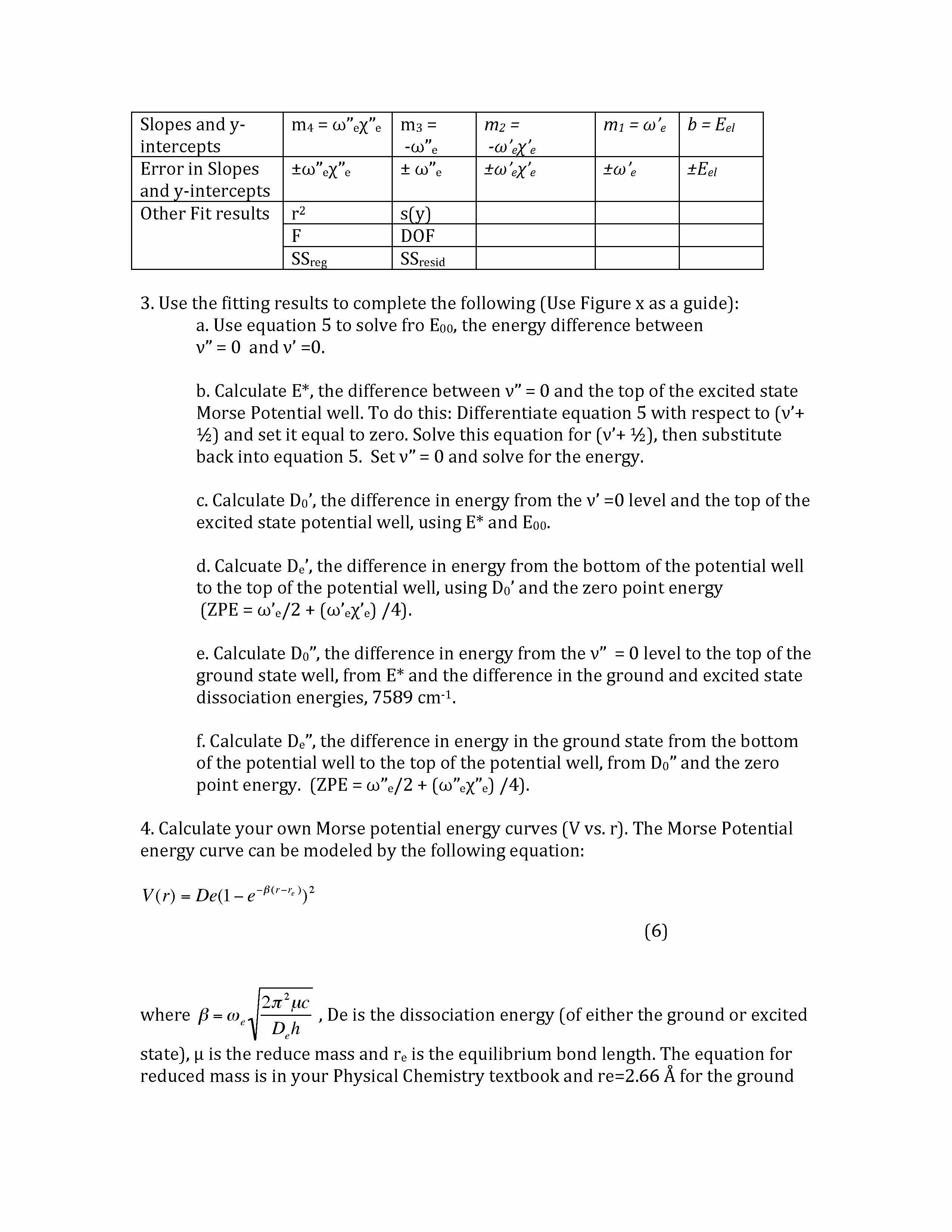Physical Chemistry Laboratory Vibronic Spectrum of Iodine Data Sh...