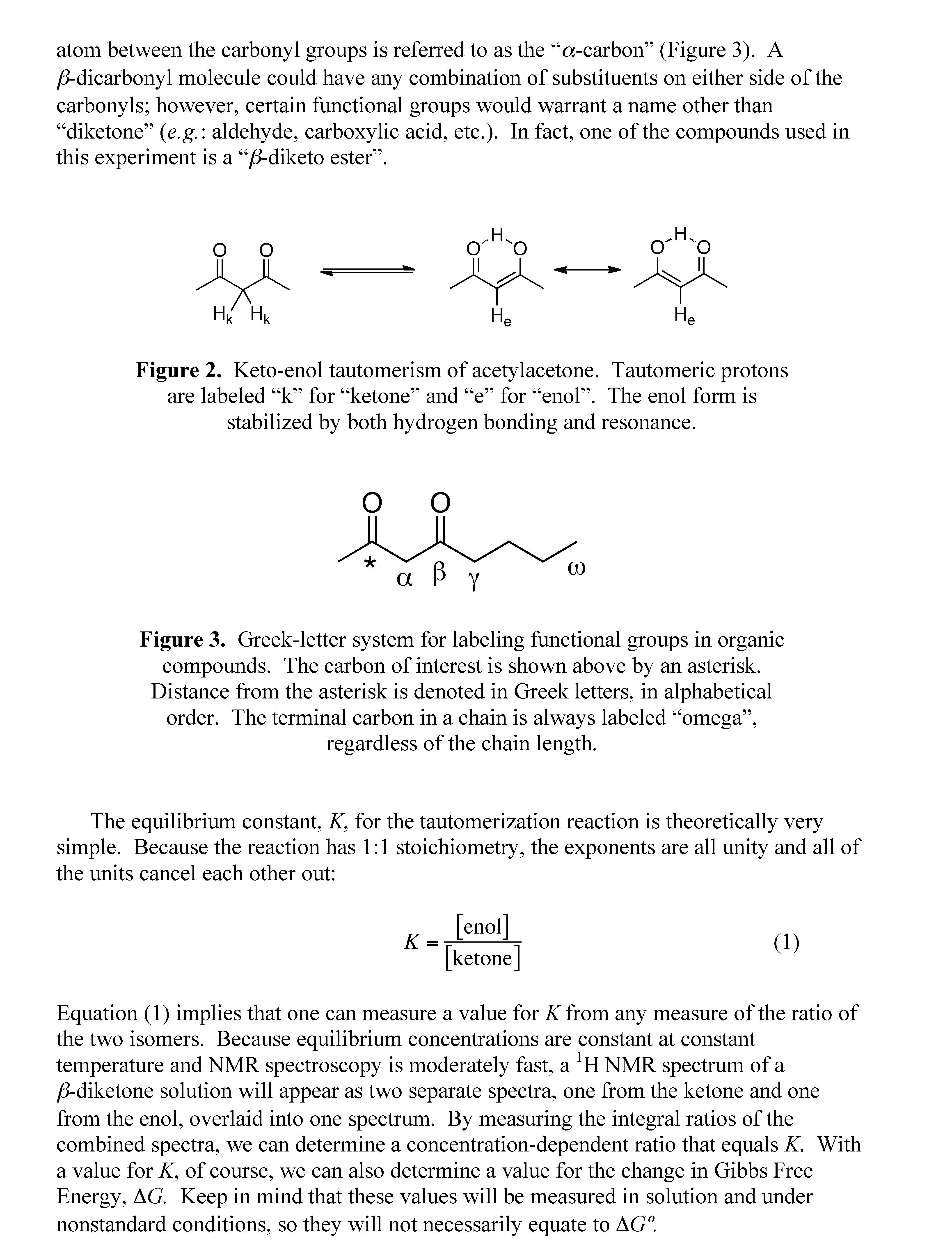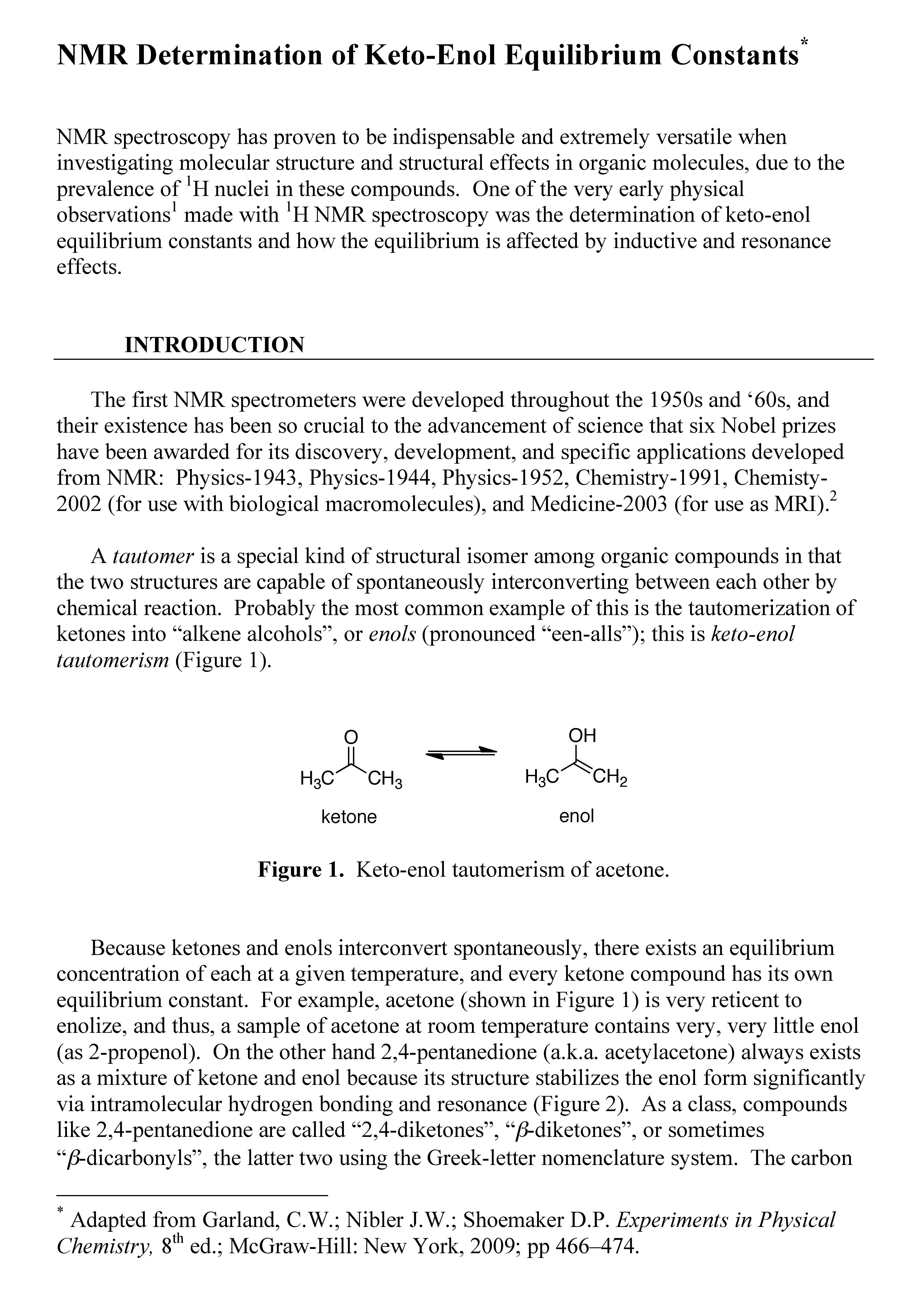 1 NMR Determination of Keto-Enol Equilibrium Constants* NMR spect...