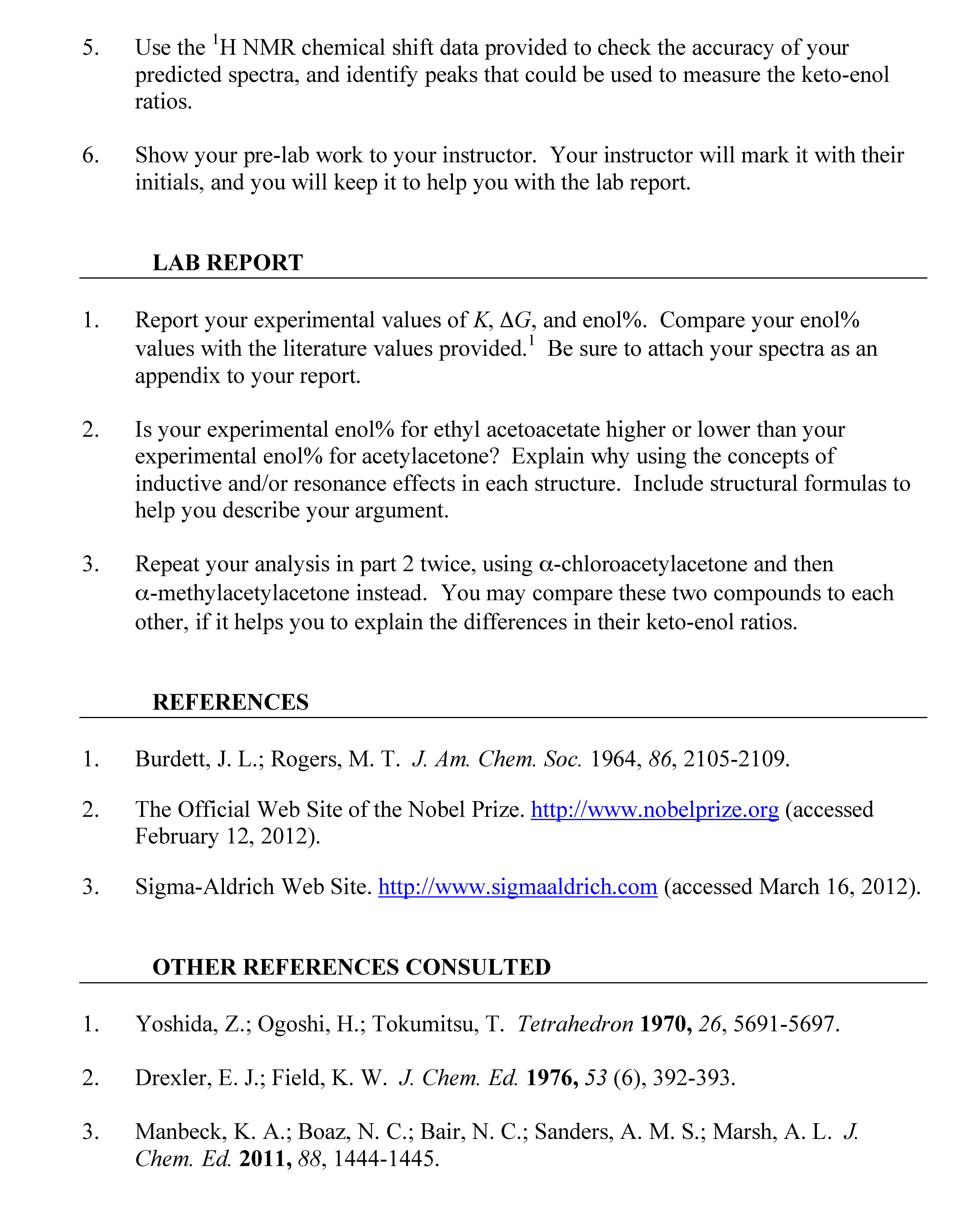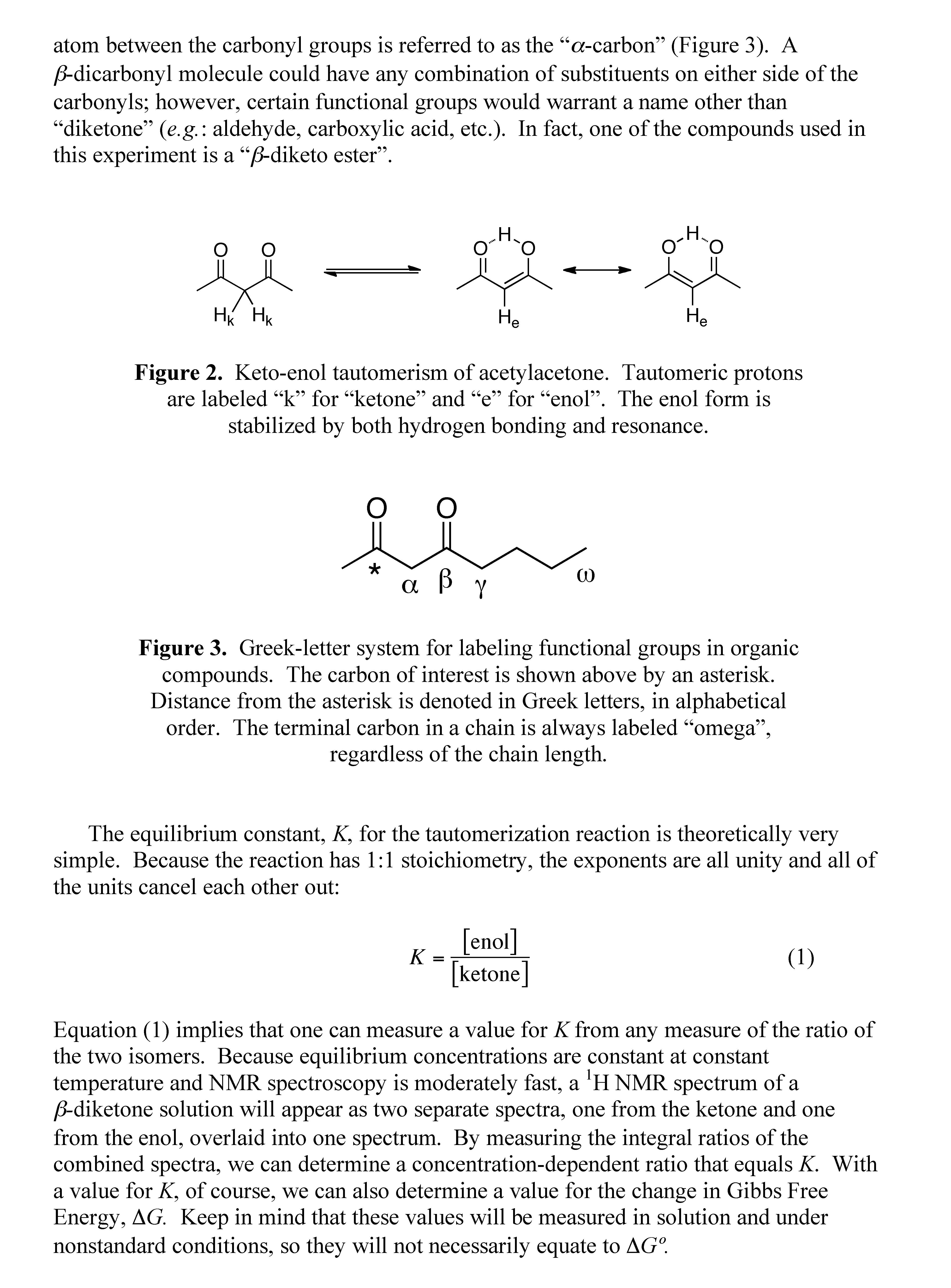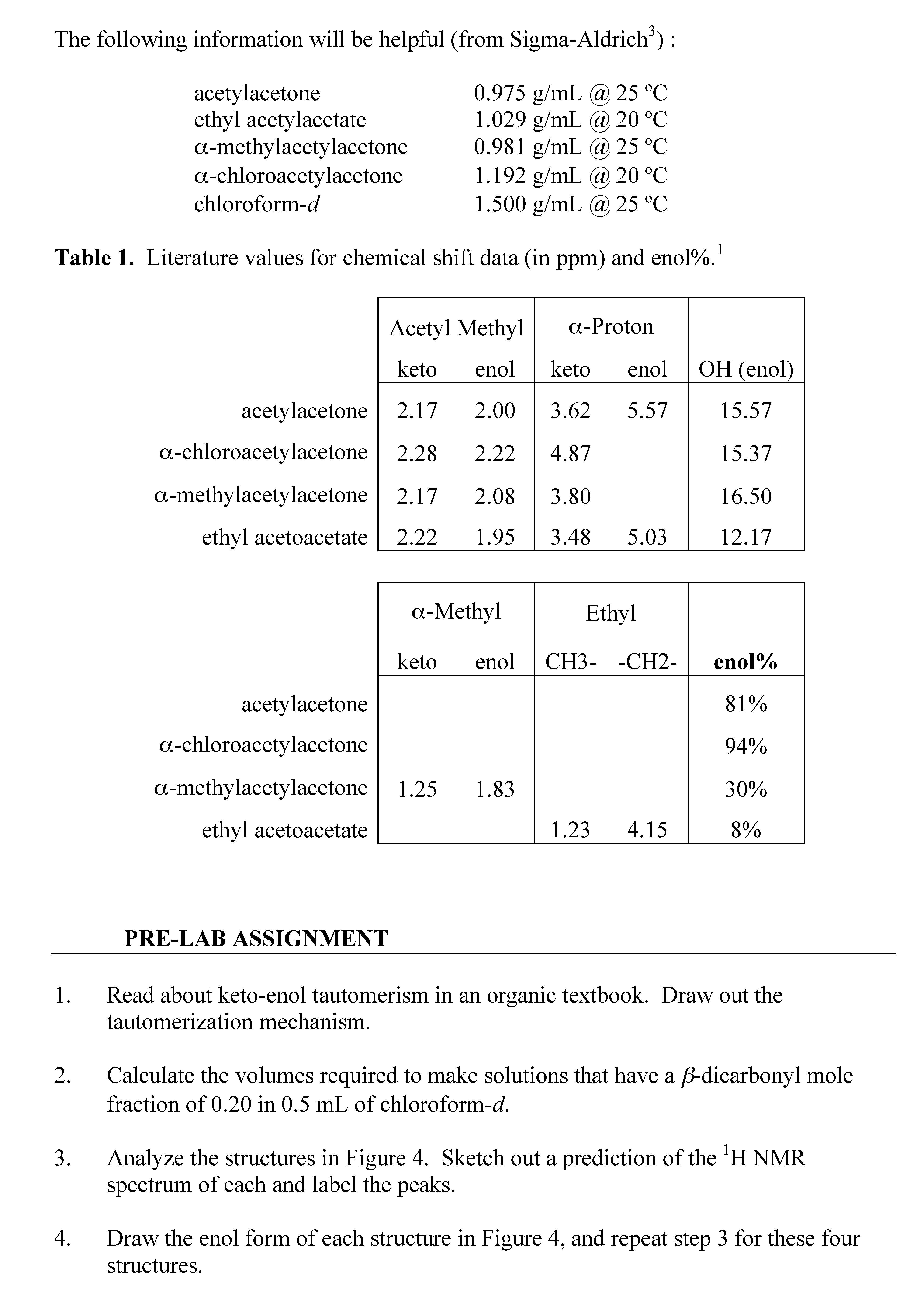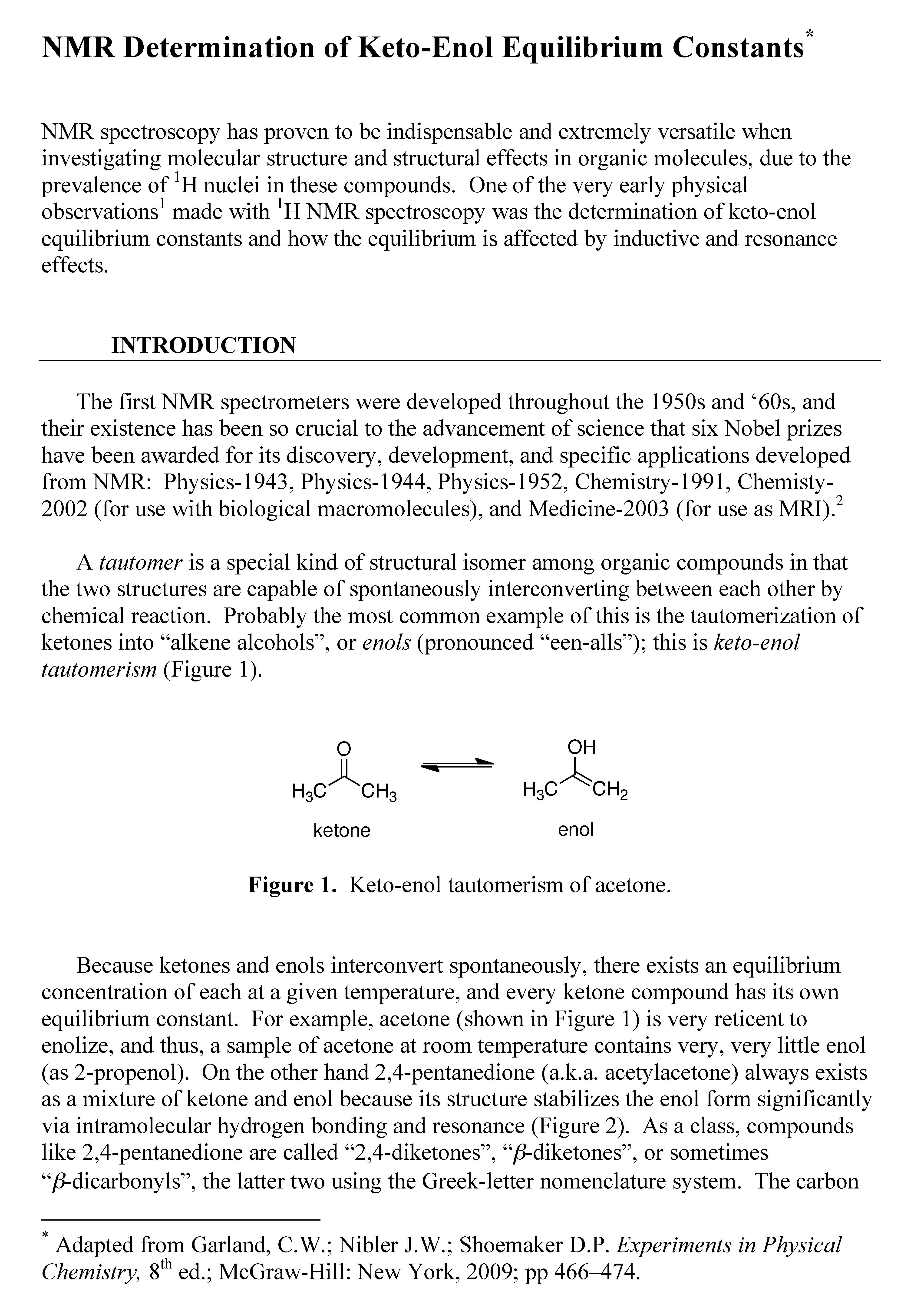 1 NMR Determination of Keto-Enol Equilibrium Constants* NMR spect...
