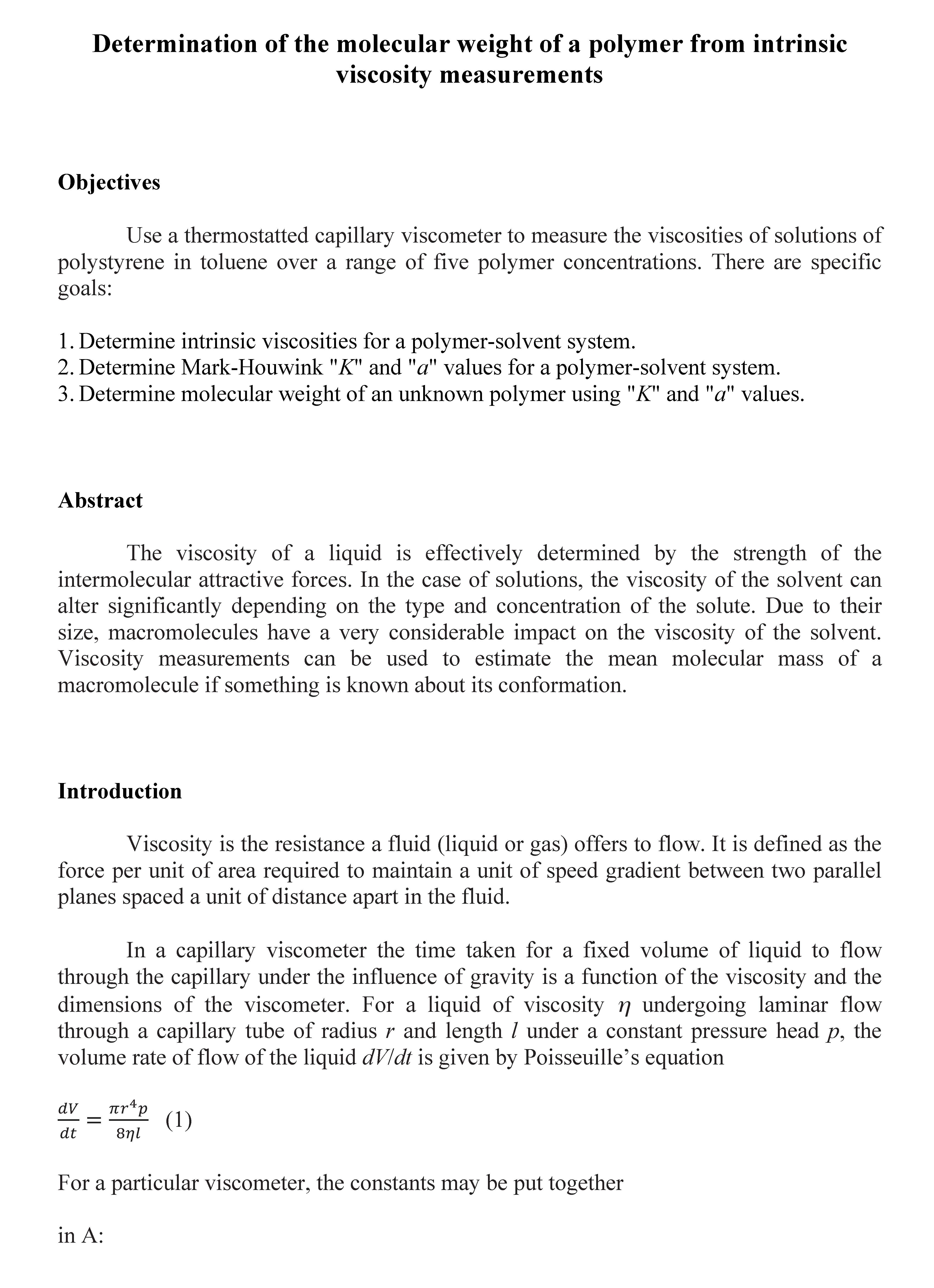 Determination of the molecular weight of a polymer from intrinsic...