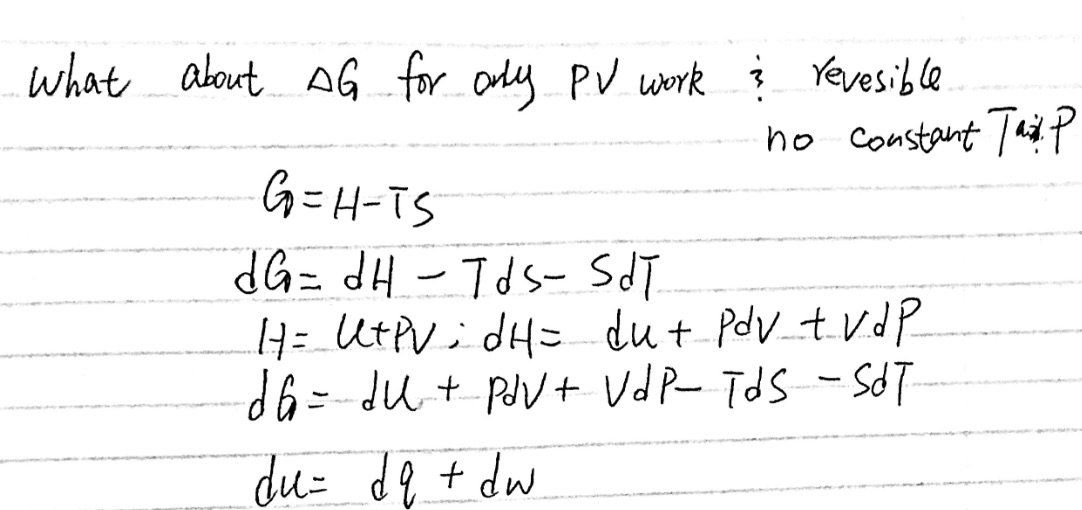 what about AG for only PV work ? revesible no constant Tail G=H-T...