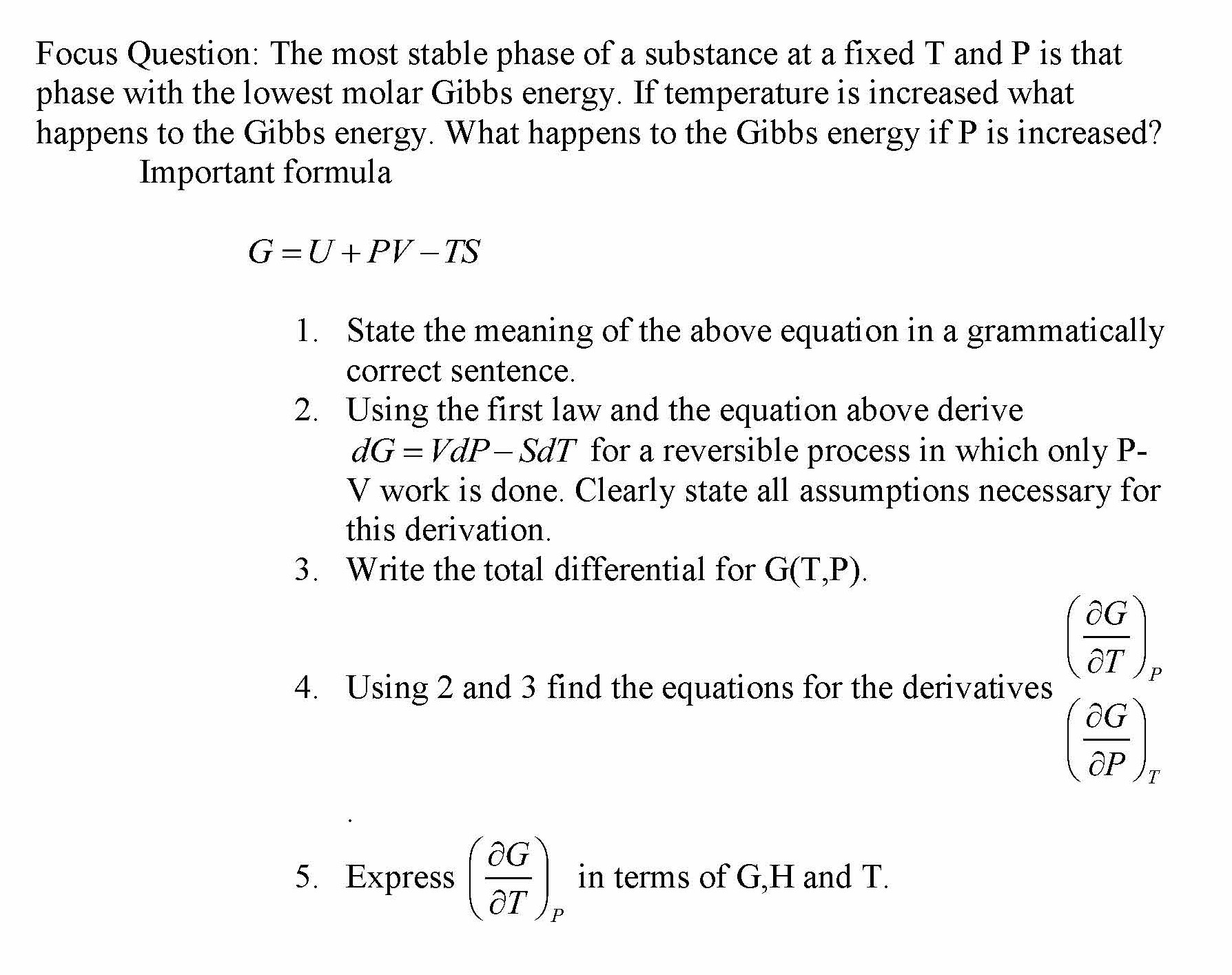 Focus Question: The most stable phase of a substance at a fixed T a...