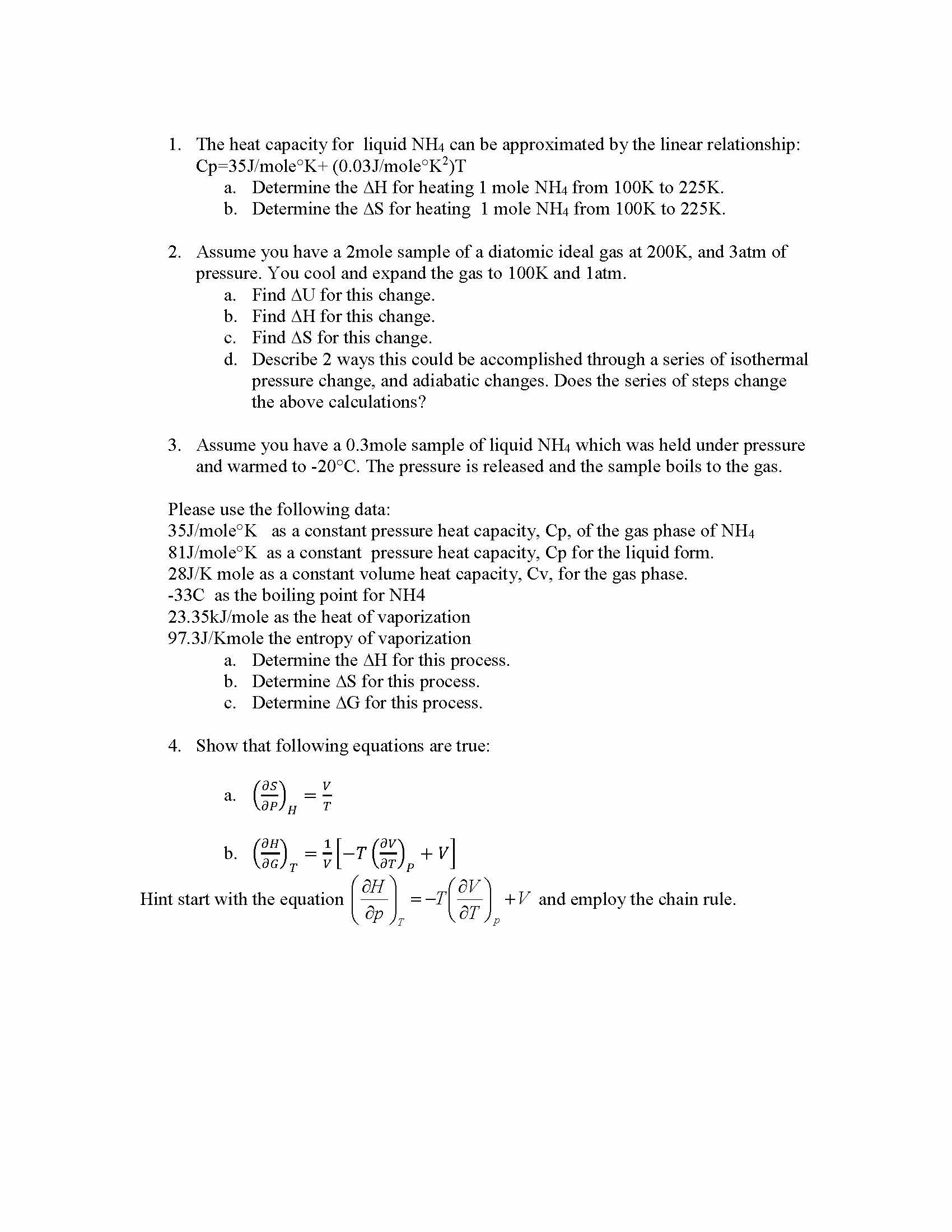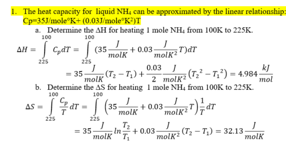 1. The heat capacity for liquid NH4 can be approximated by the line...