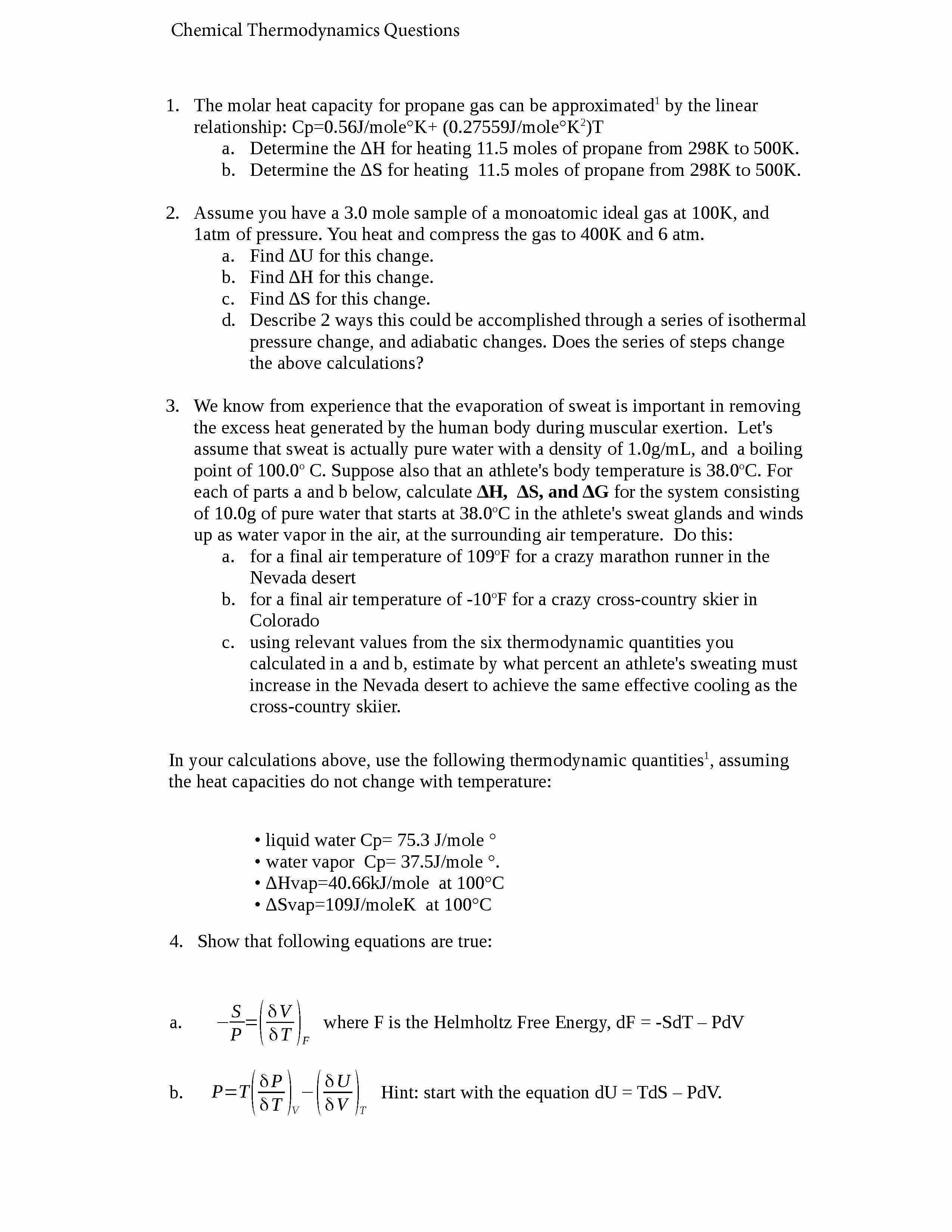 Chemical Thermodynamics Questions 1. The molar heat capacity for p...