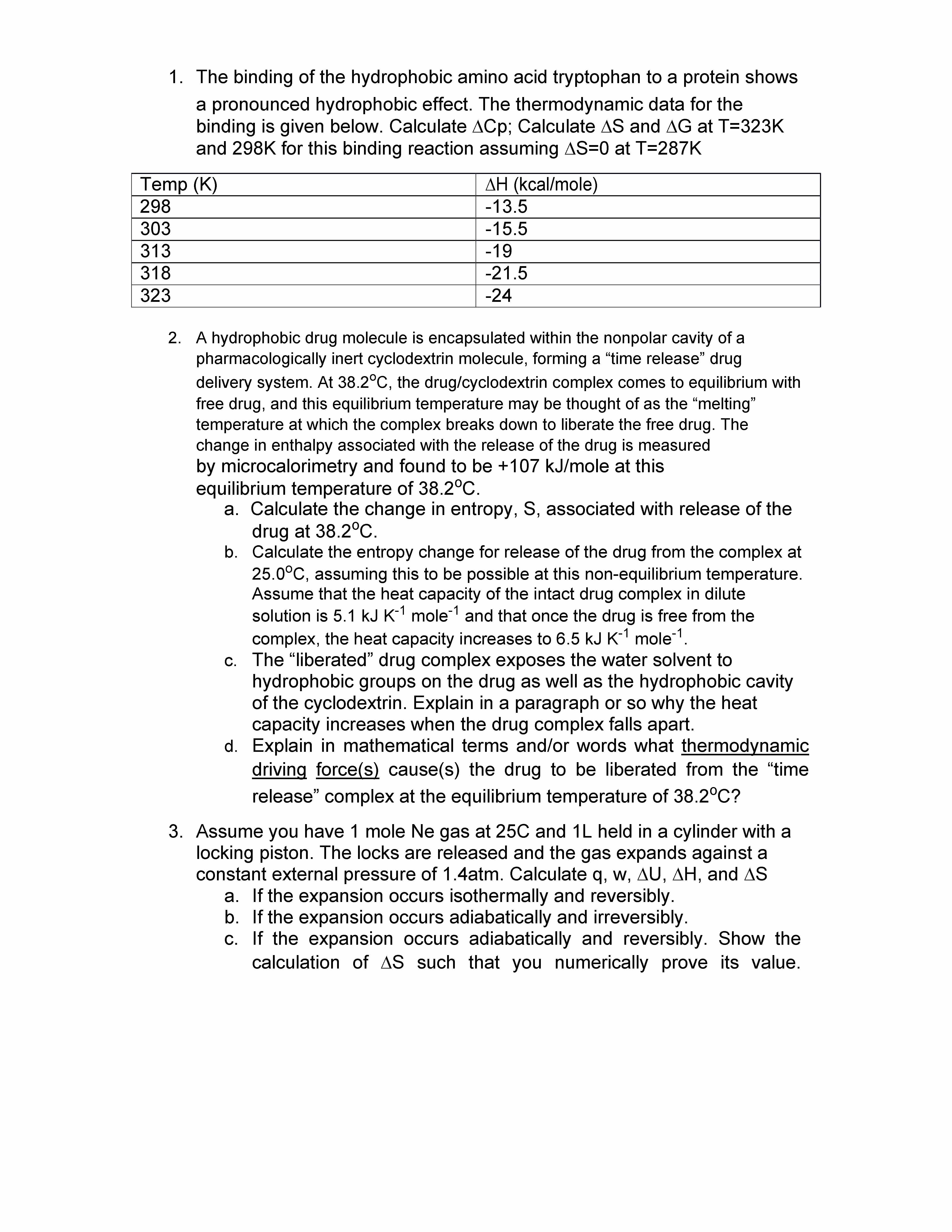 1. The binding of the hydrophobic amino acid tryptophan to a protei...