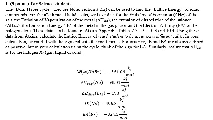 1. (8 points) For Science students The "Born-Haber cycle"...