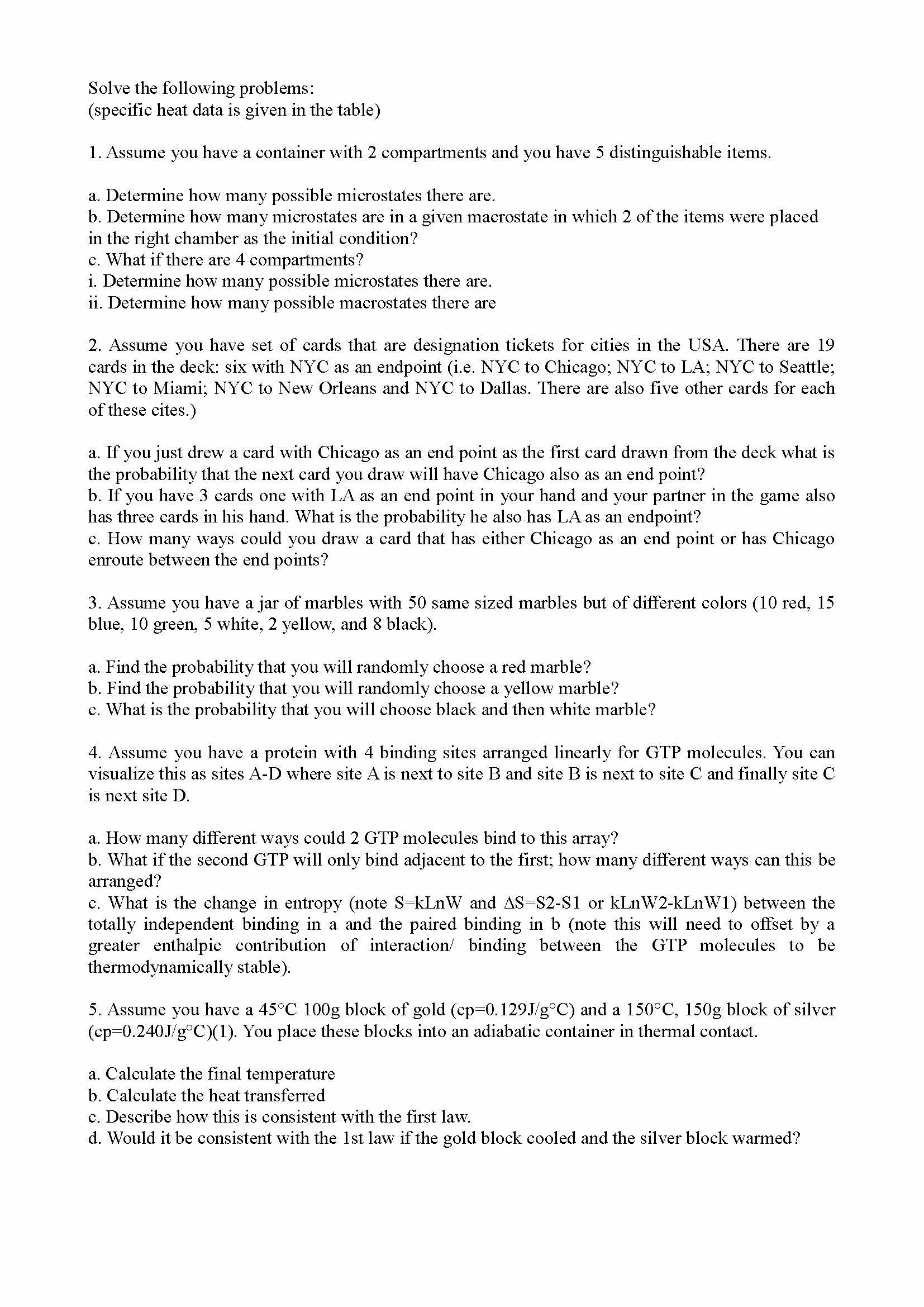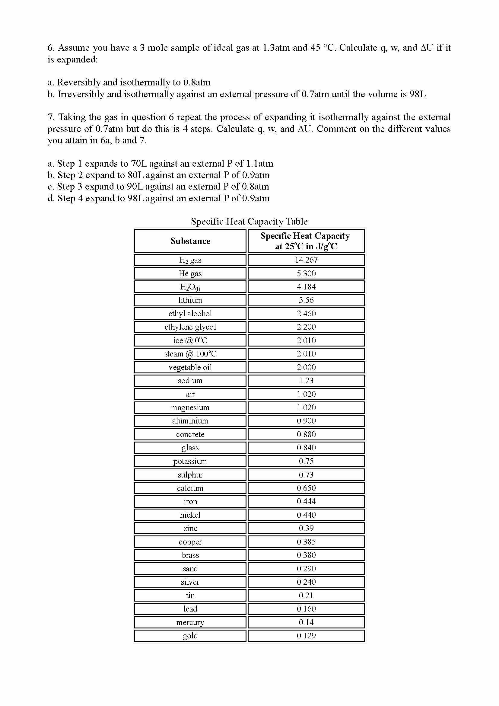 Solve the following problems: (specific heat data is given in the ...