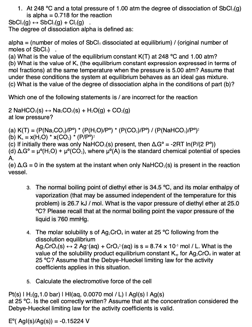 1. At 248 °C and a total pressure of 1.00 atm the degree of disso...