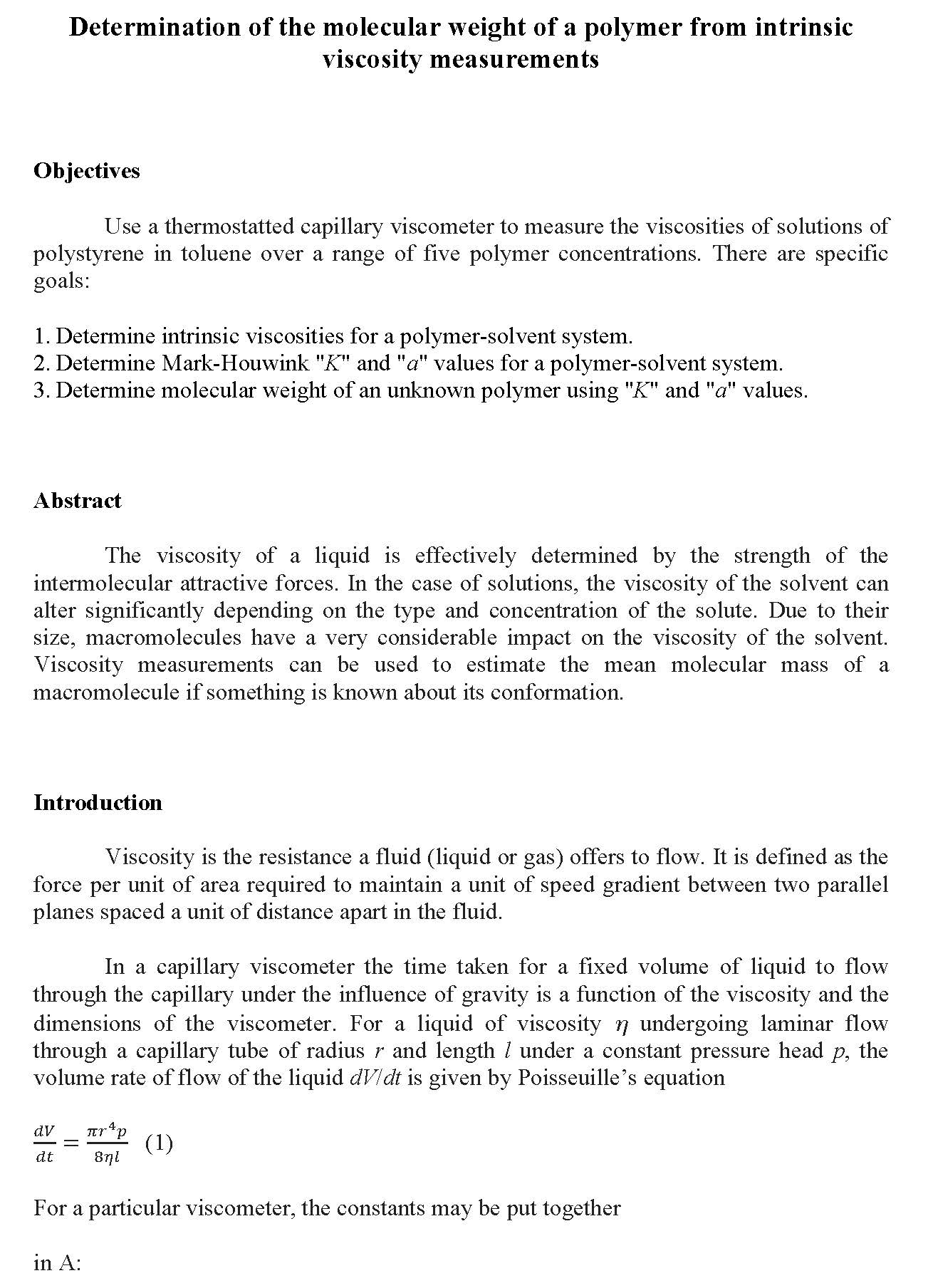 Determination of the molecular weight of a polymer from intrinsic...
