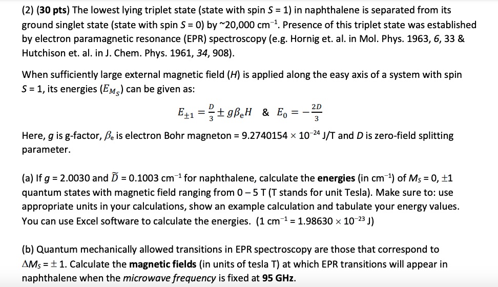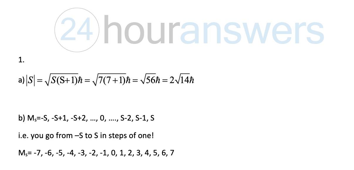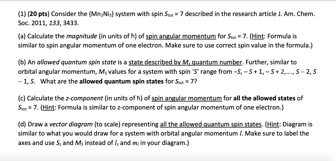 (1) (20 pts) Consider the {Mn2Ni3} system with spin Stot = 7 descri...