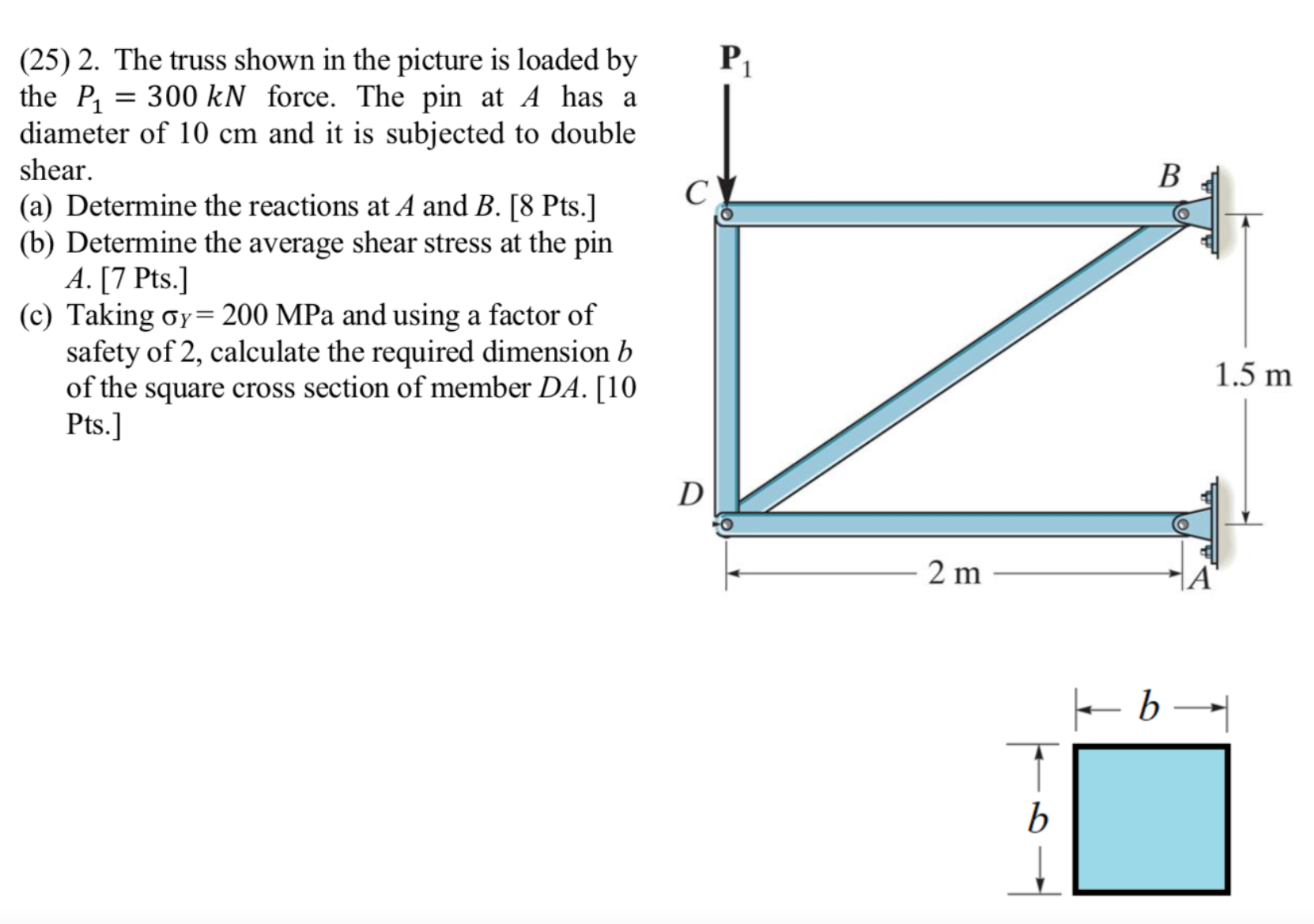 (25) 2. The truss shown in the picture is loaded by P1 the P1 = 3...
