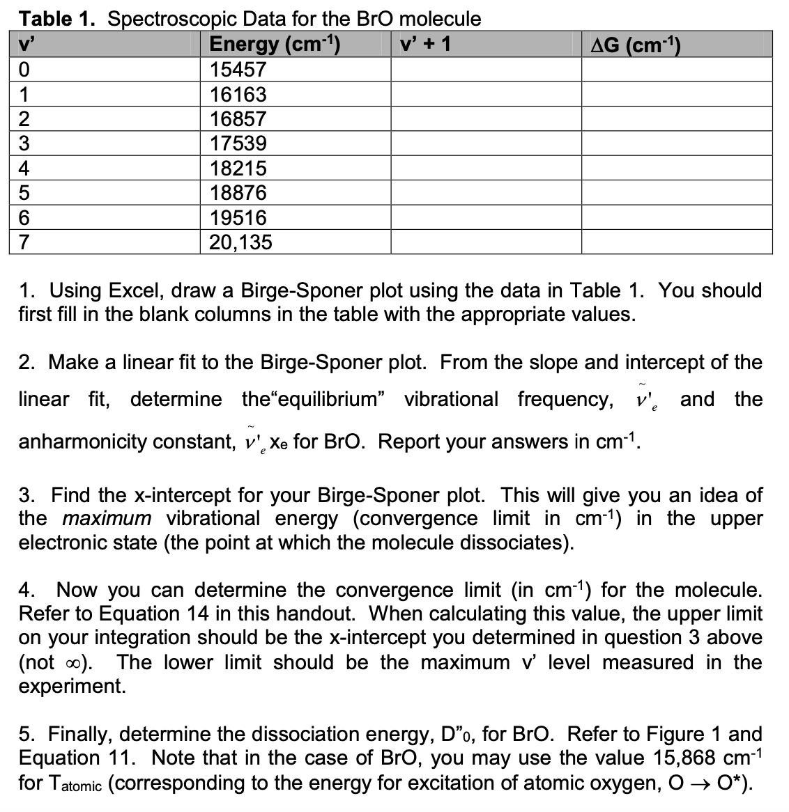 Table 1. Spectroscopic Data for the BrO molecule v' Energy (cm-1)...