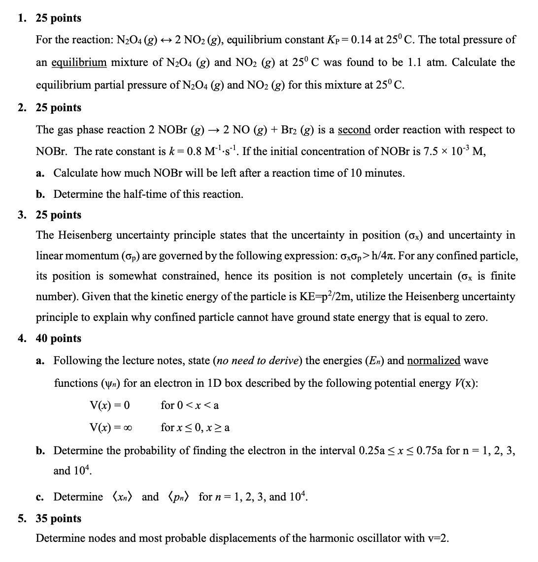 25 points For the reaction: N2O4 (g) ↔ 2 NO2 (g), equilibri...