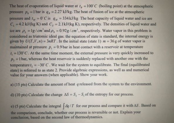 The heat of evaporation of liquid water at tg = 100 C (boiling poin...