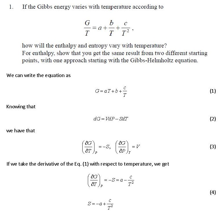 If the Gibbs energy varies with temperature according to , 2 T c...