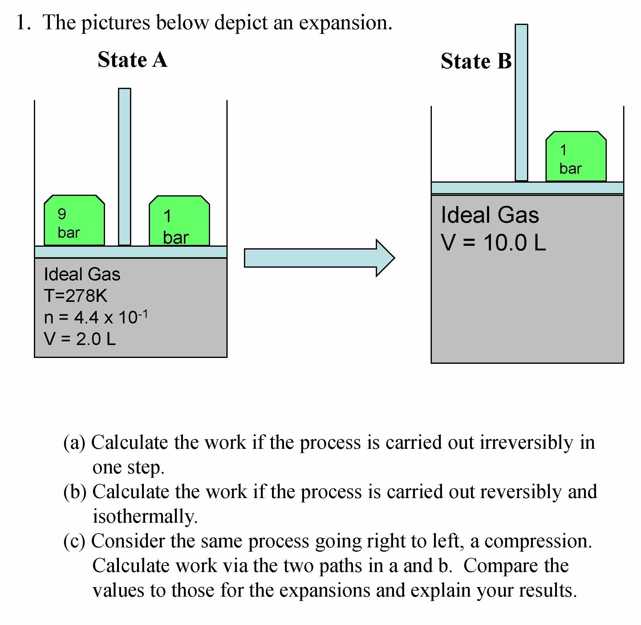The pictures below depict an expansion. (a) Calculate the work if ...