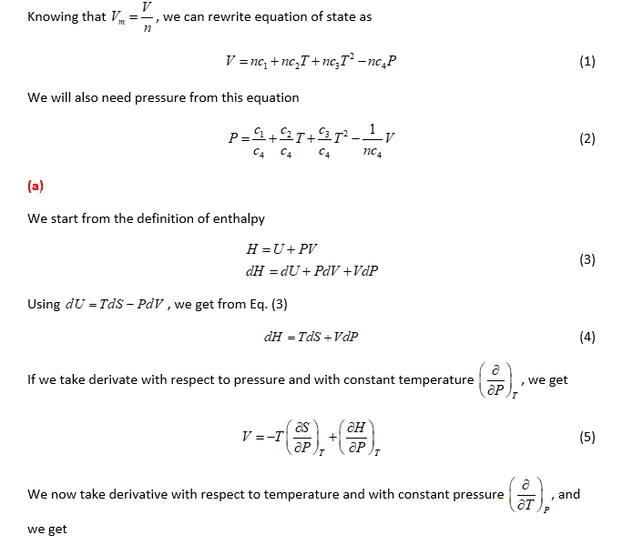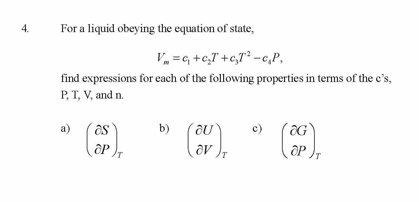 For a liquid obeying the equation of state, find expressions for e...