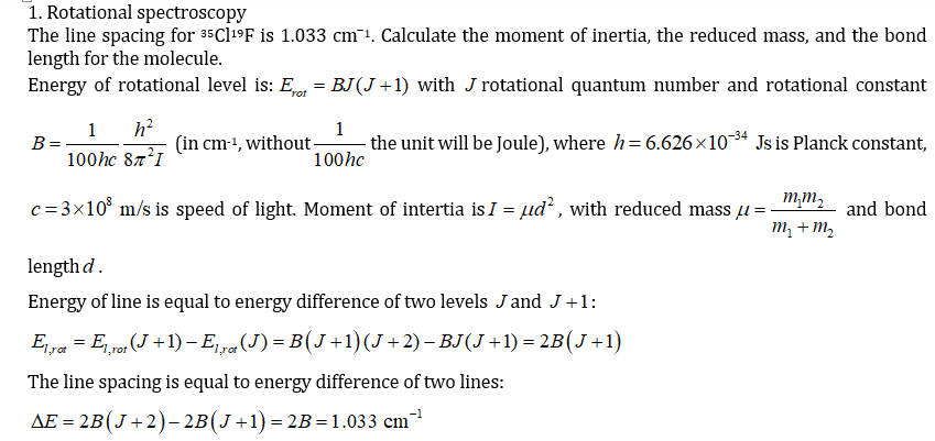 1. Rotational spectroscopy The line spacing for ³âµCl¹â¹F is 1...