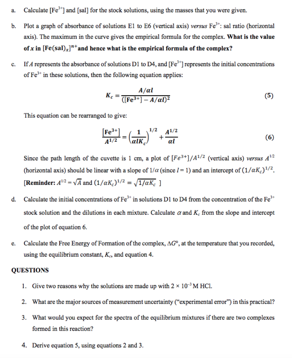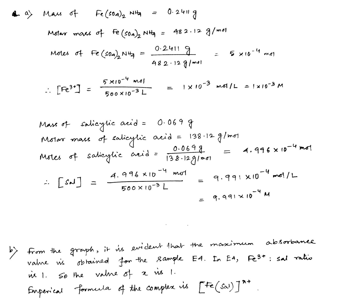 a. Calculate [Fe3+ and [sal] for the stock solutions, using the ma...