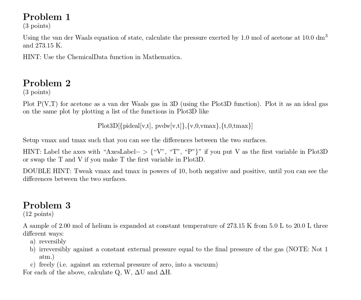 Problem 1 (3 points) Using the van der Waals equation of state, c...