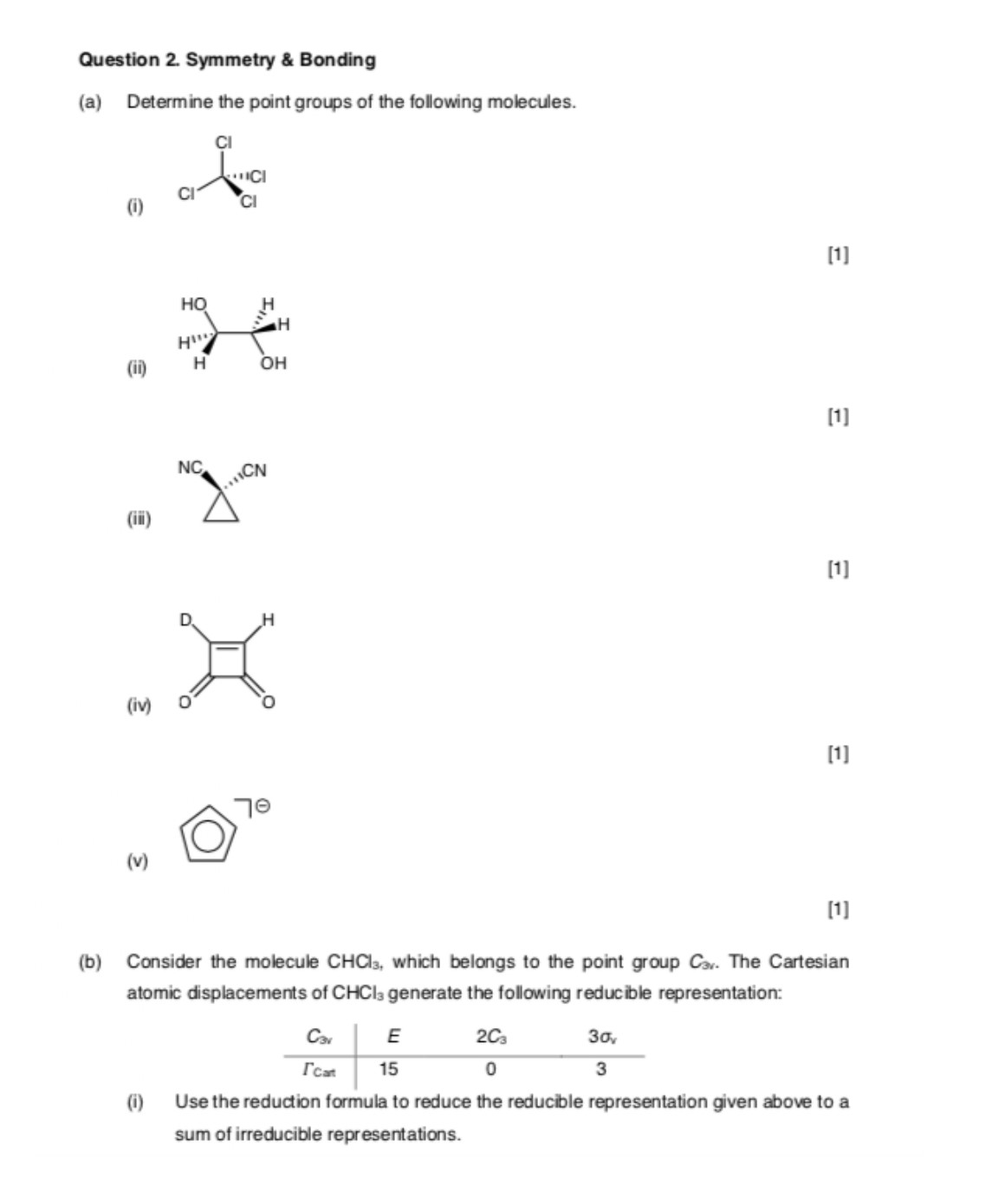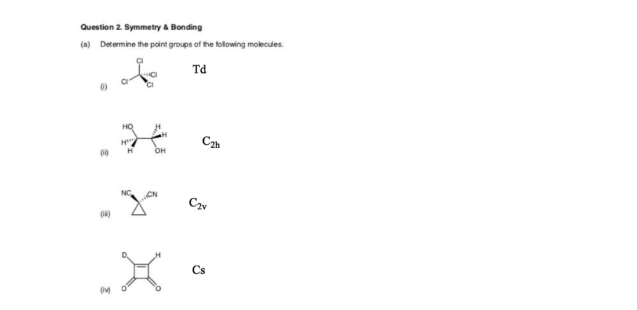 Question 2. Symmetry & Bonding (a) Determine the point groups...