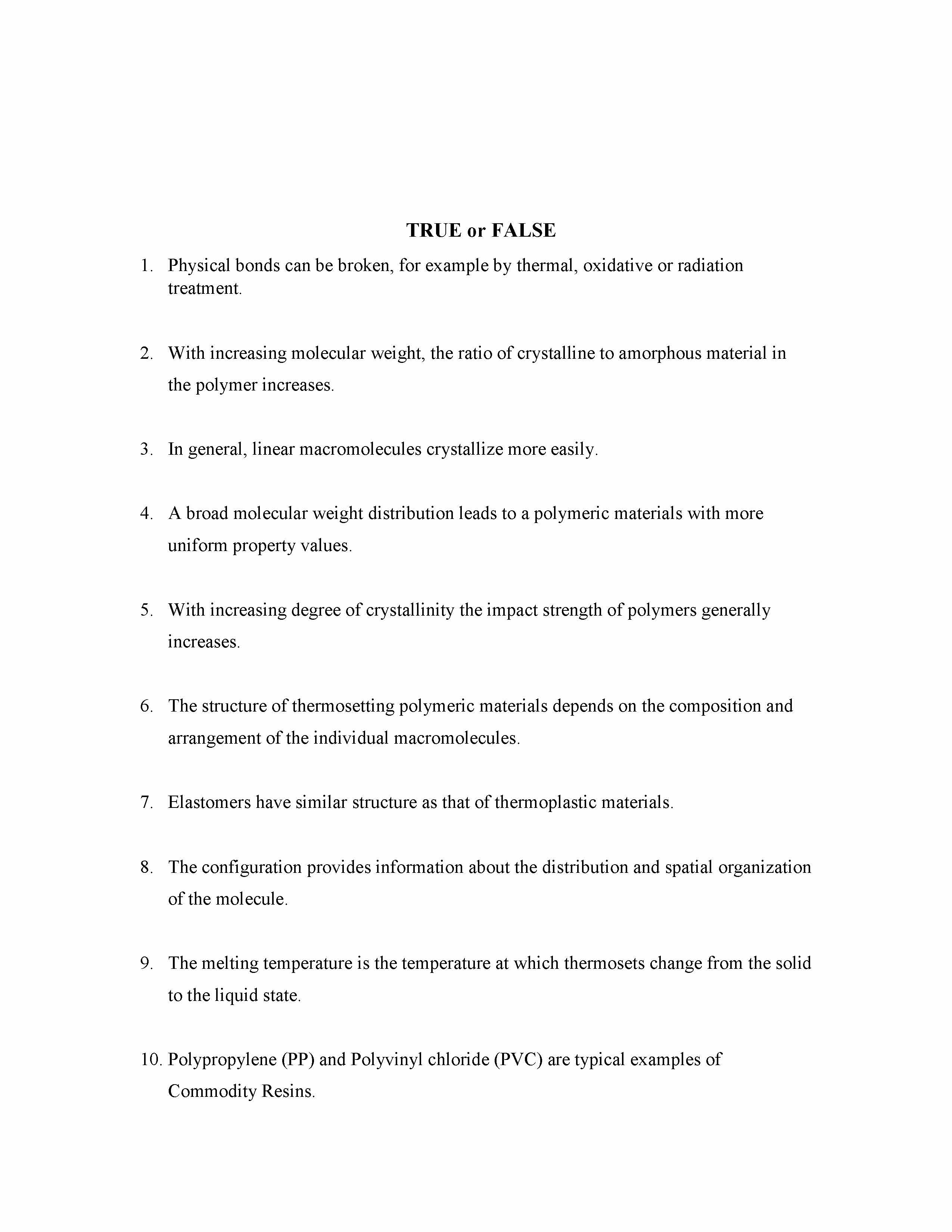 TRUE or FALSE 1. Physical bonds can be broken, for example by ther...