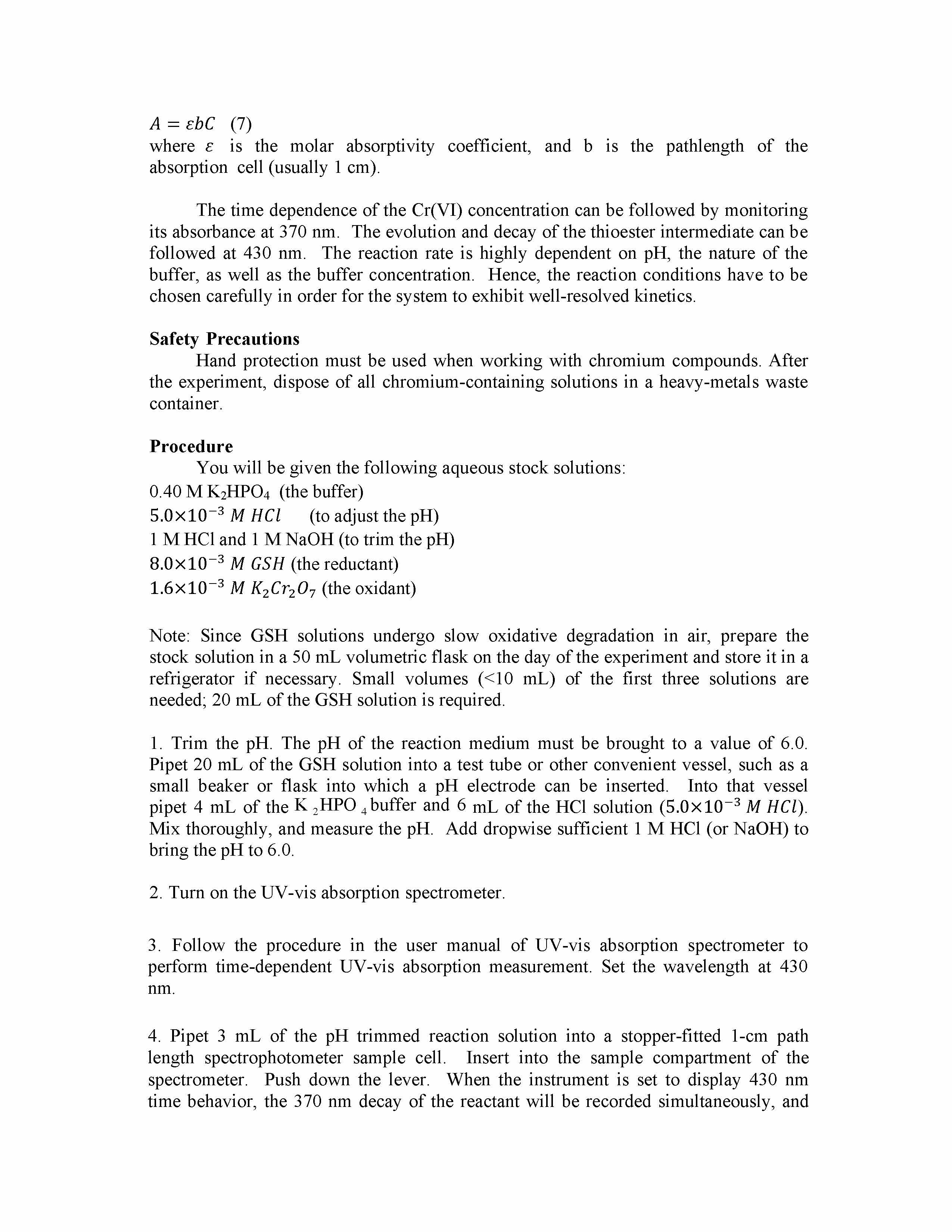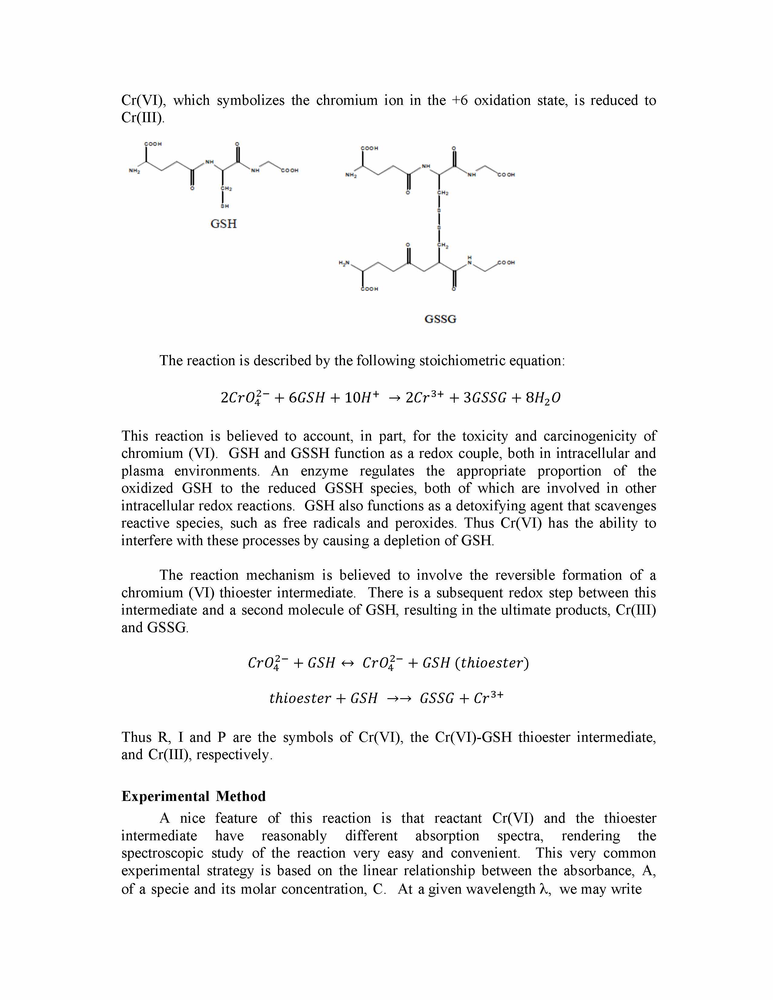 Consecutive Reaction Kinetics: The Reduction of Cr(VI) by Glutathi...