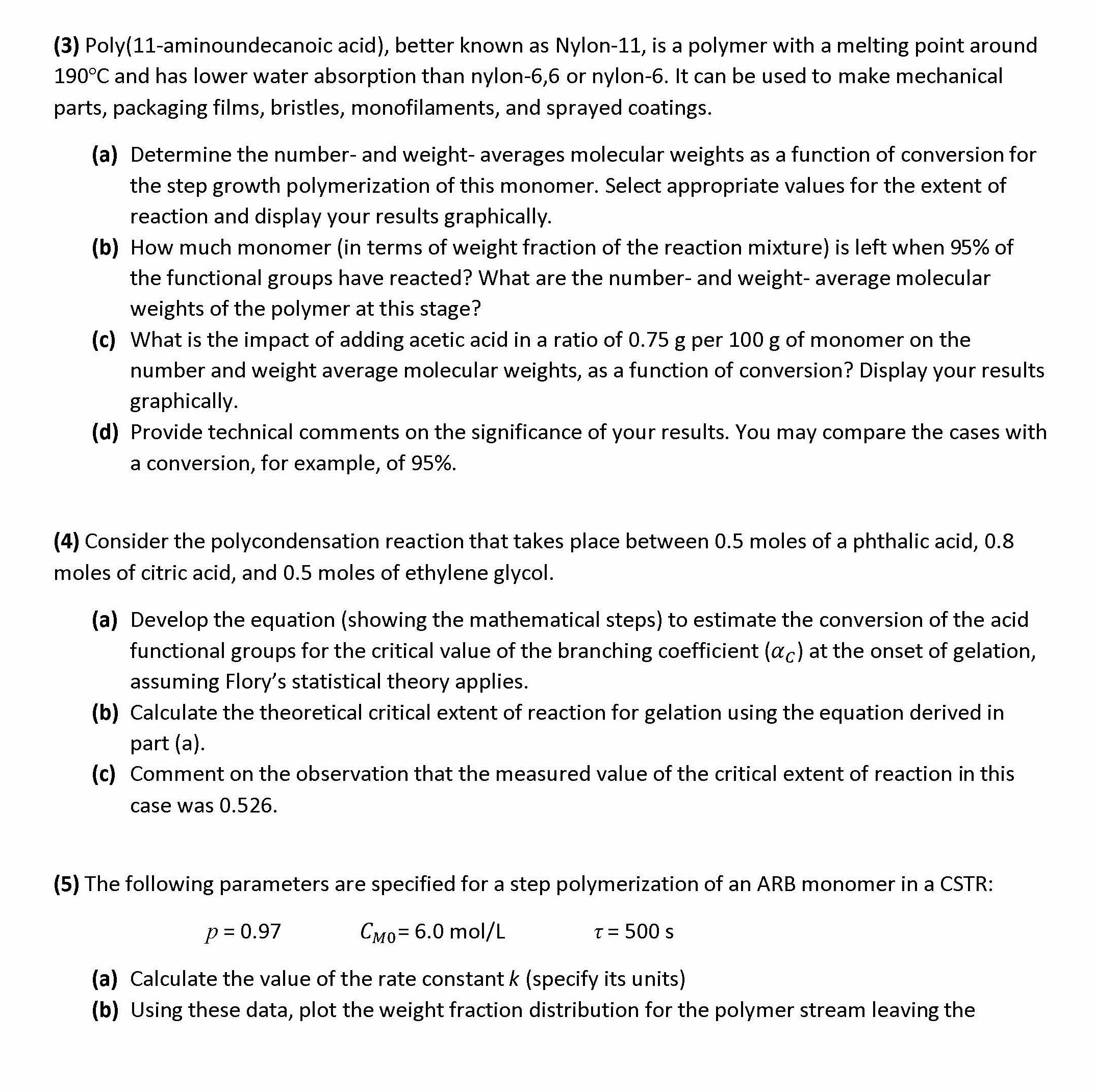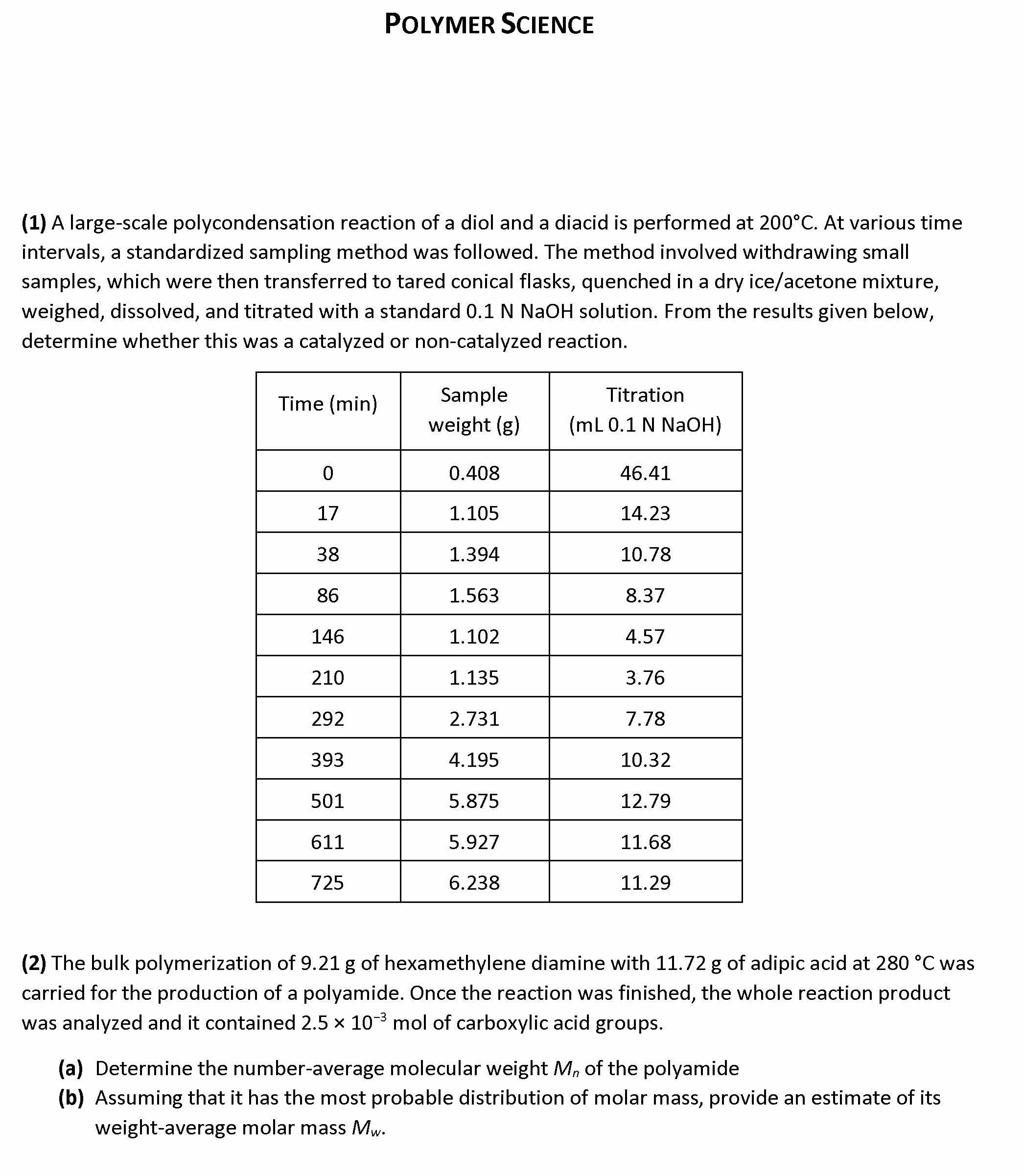 POLYMER SCIENCE (1) Alarge-scale polycondensation reaction of diol...