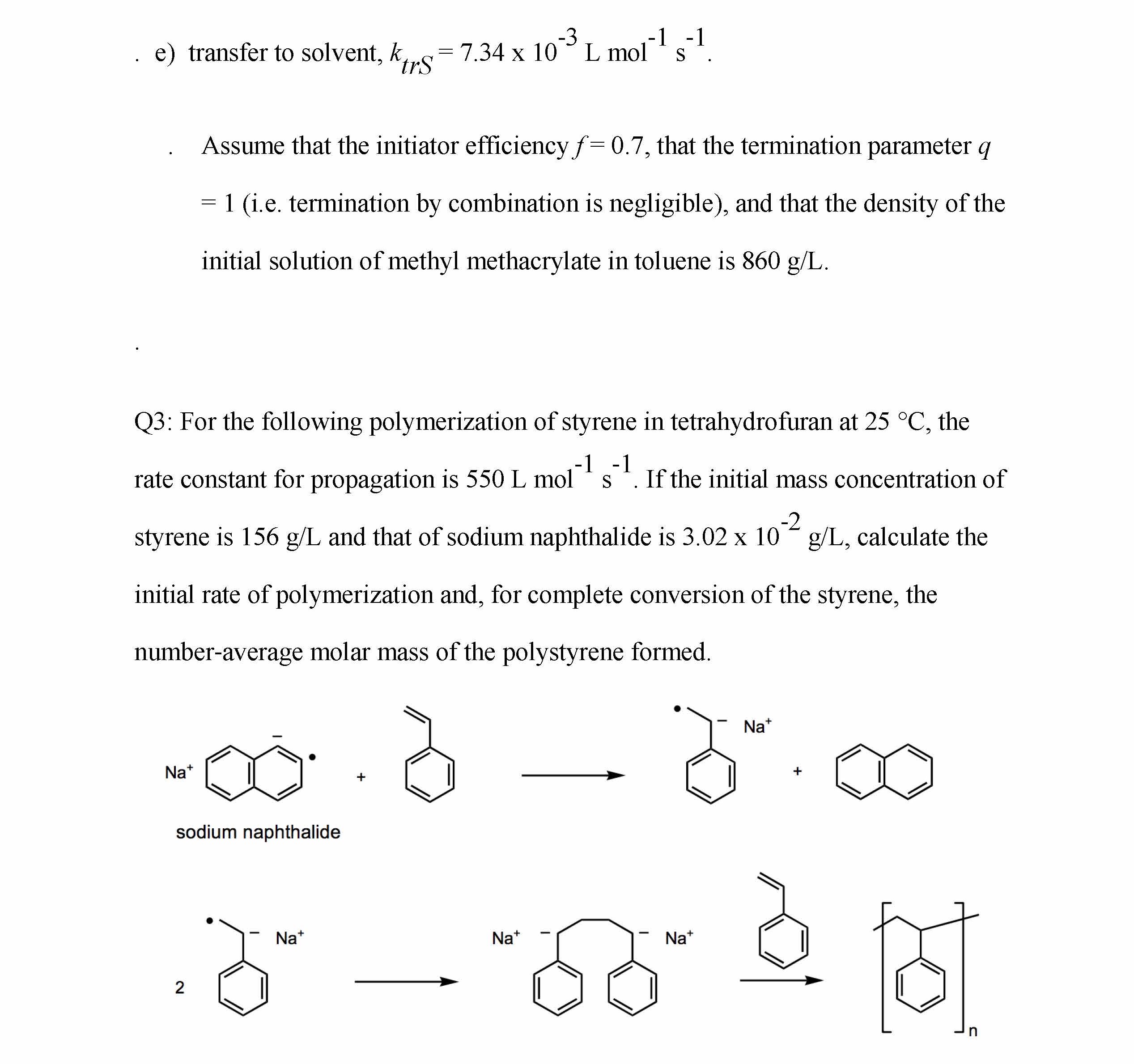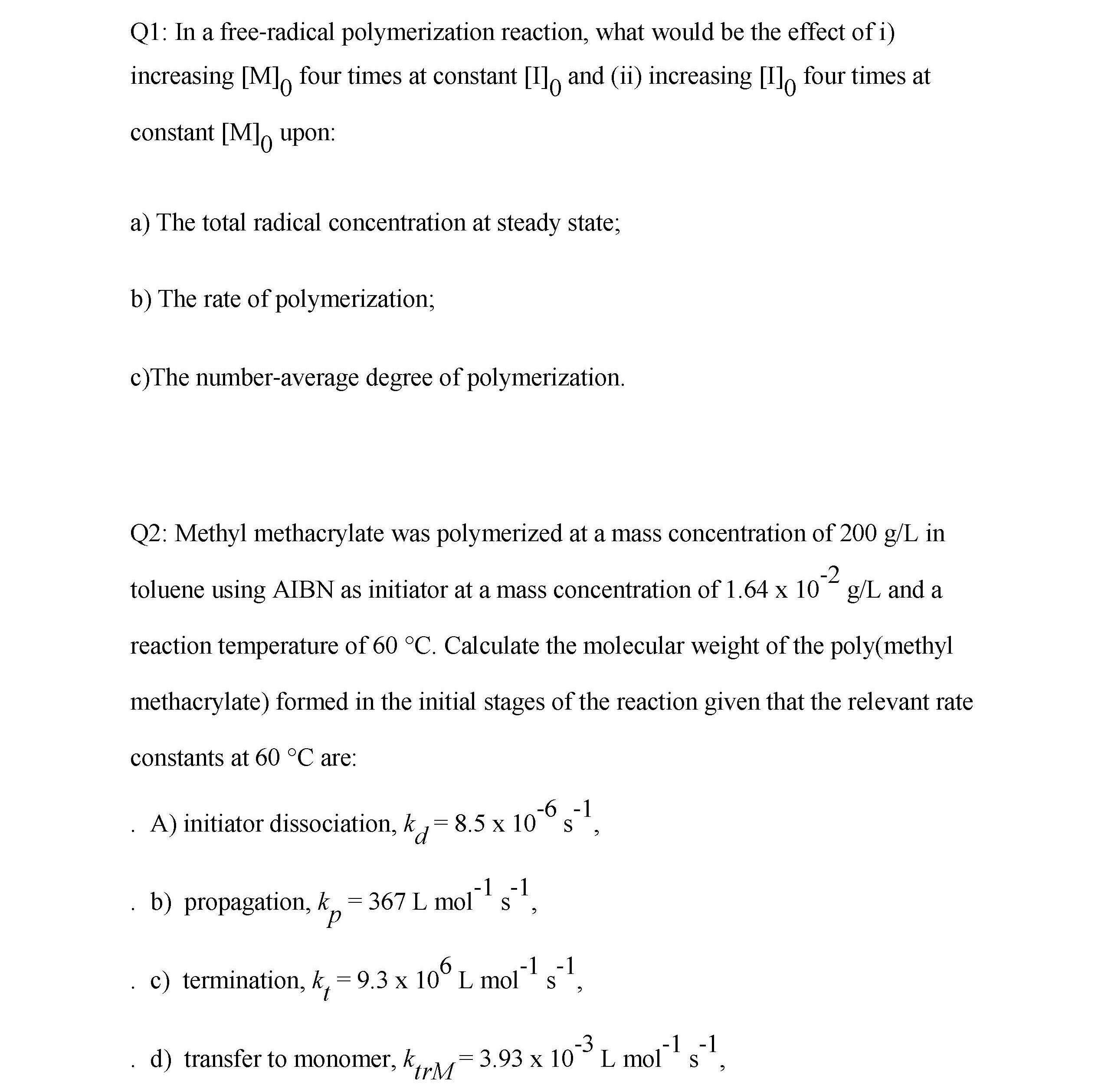 Q1: In a free-radical polymerization reaction, what would be the ef...