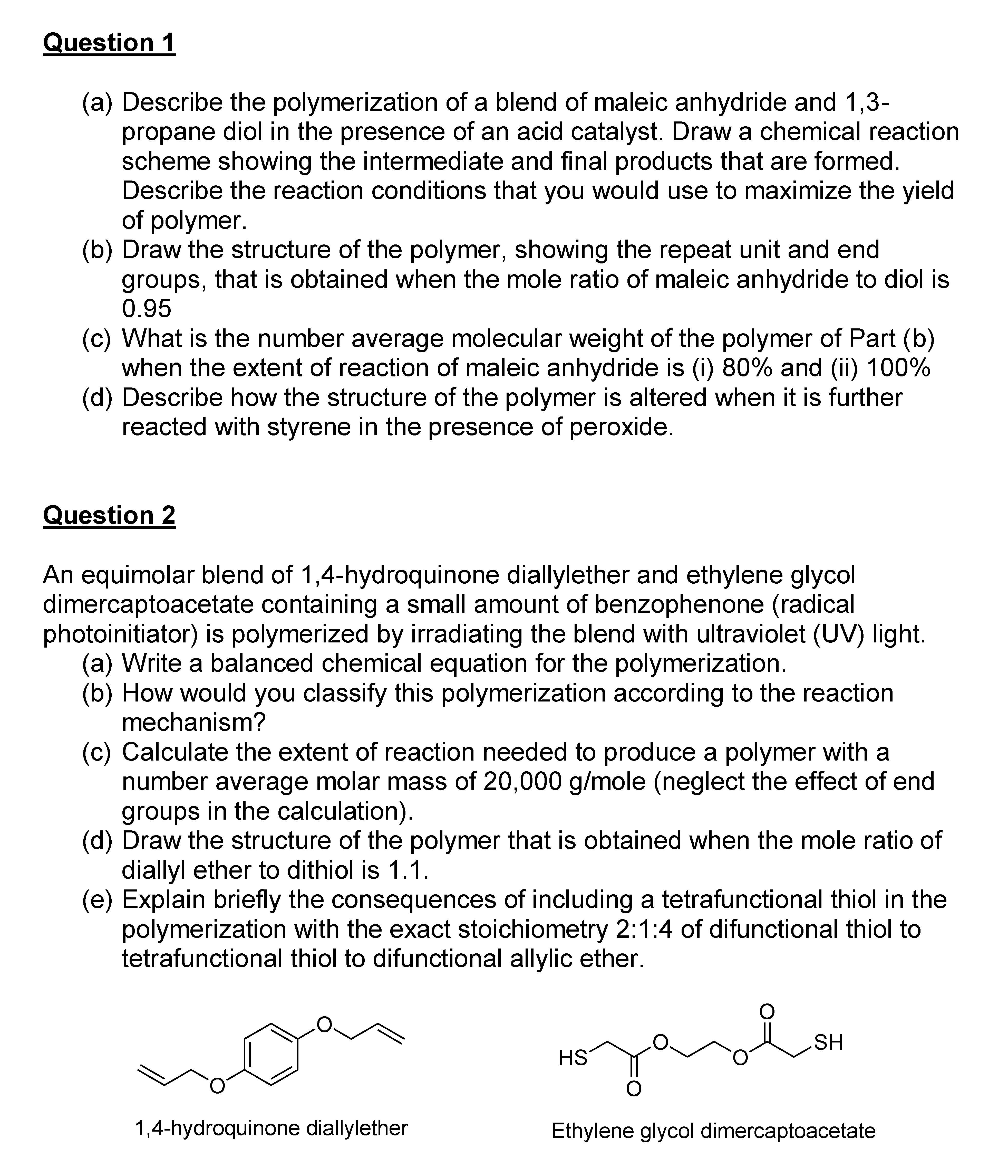Question (a) Describe the polymerization of blend of maleic anhydr...