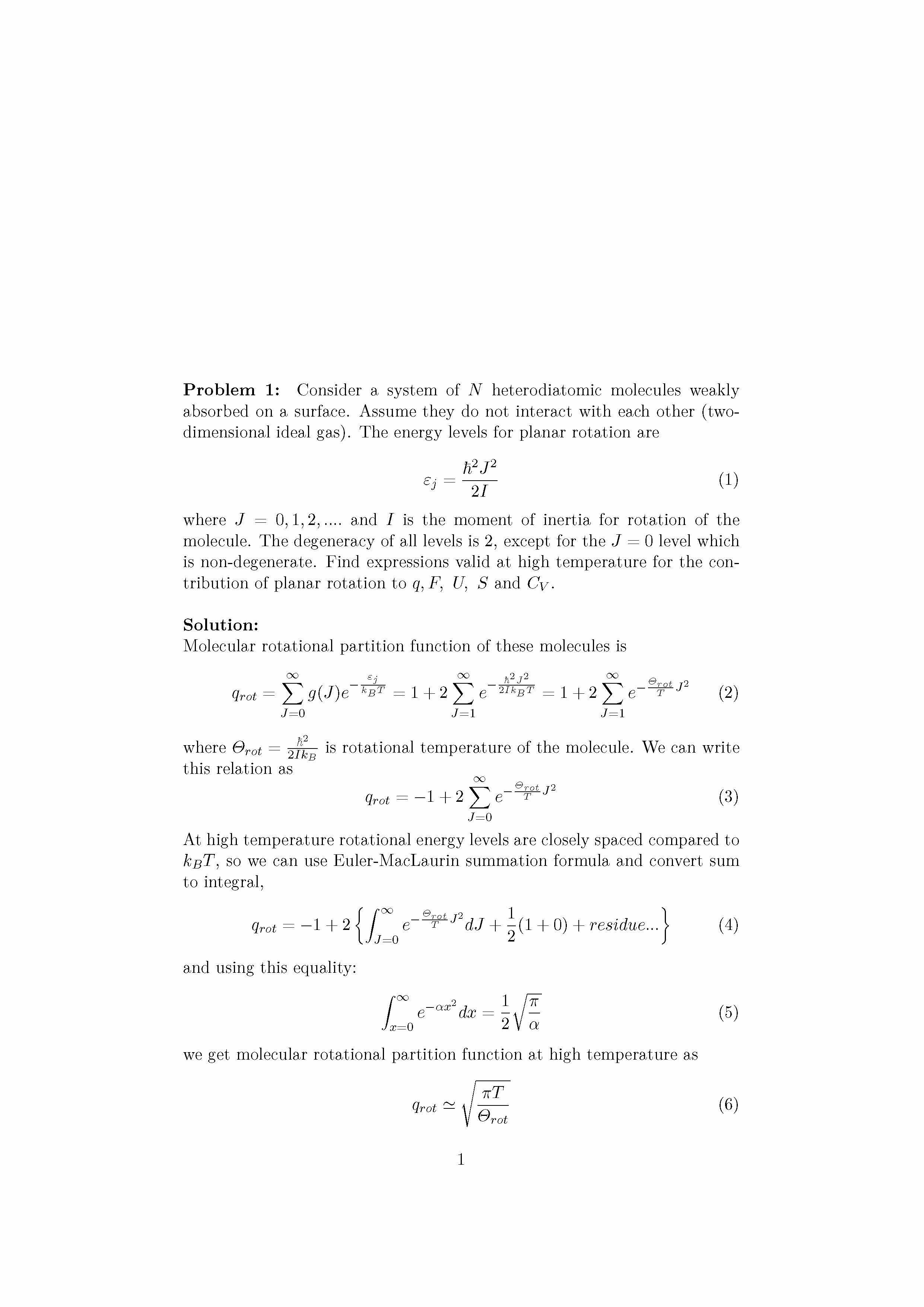 1. Consider a system of N heterodiatomic molecules weakly absorbed ...