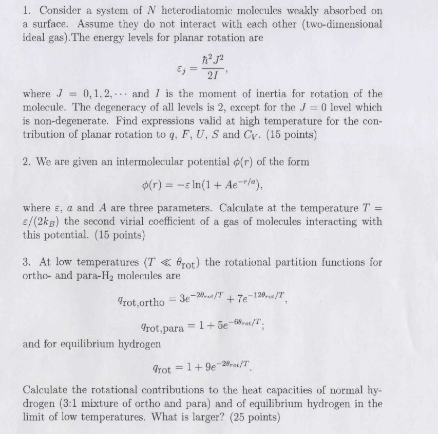 1. Consider a system of N heterodiatomic molecules weakly absorbed...