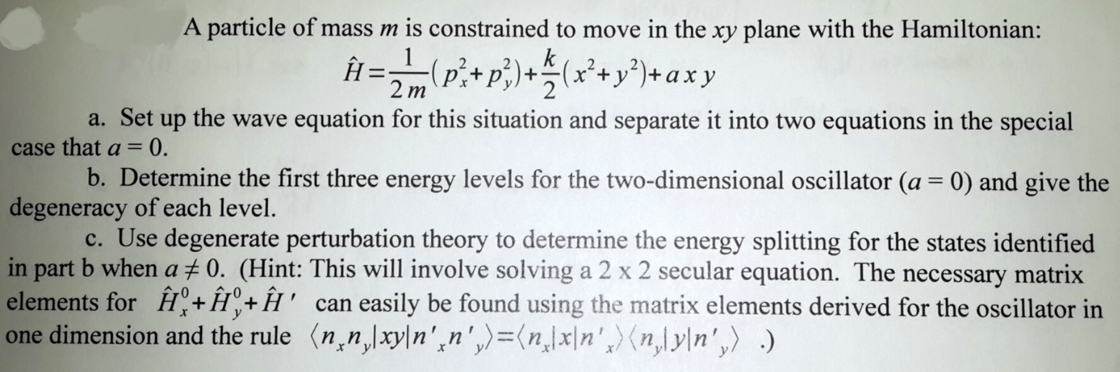 A particle of mass m is constrained to move in the xy plane with th...