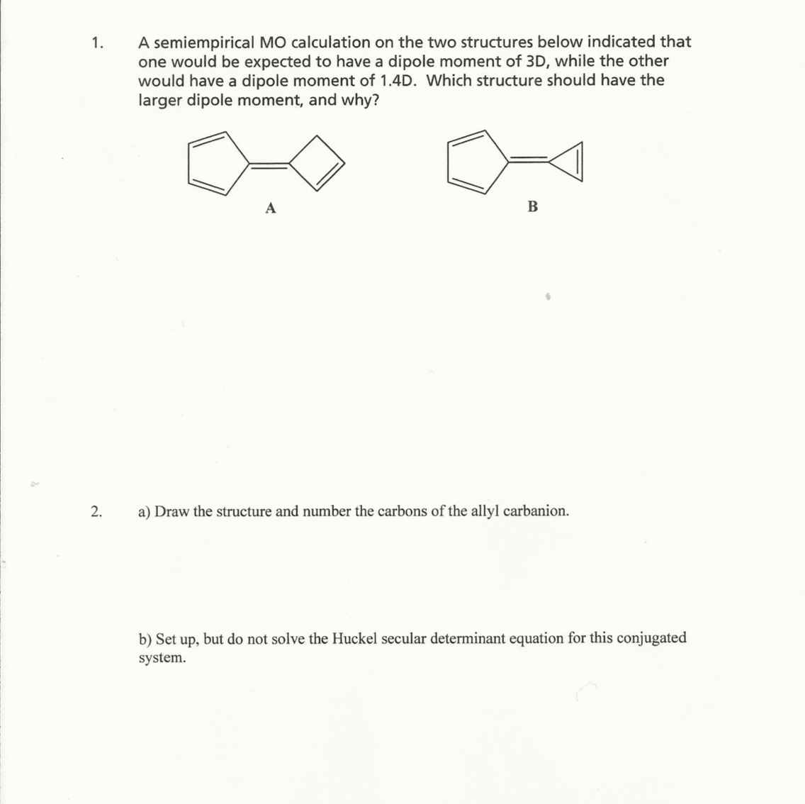 1. A semiempirical MO calculation on the two structures below indi...