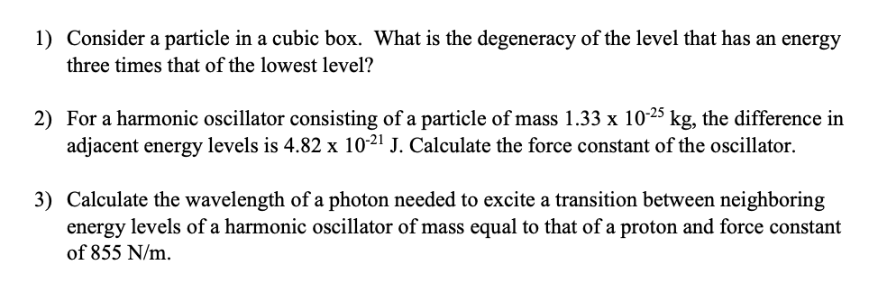 1) Consider a particle in a cubic box. What is the degeneracy of th...
