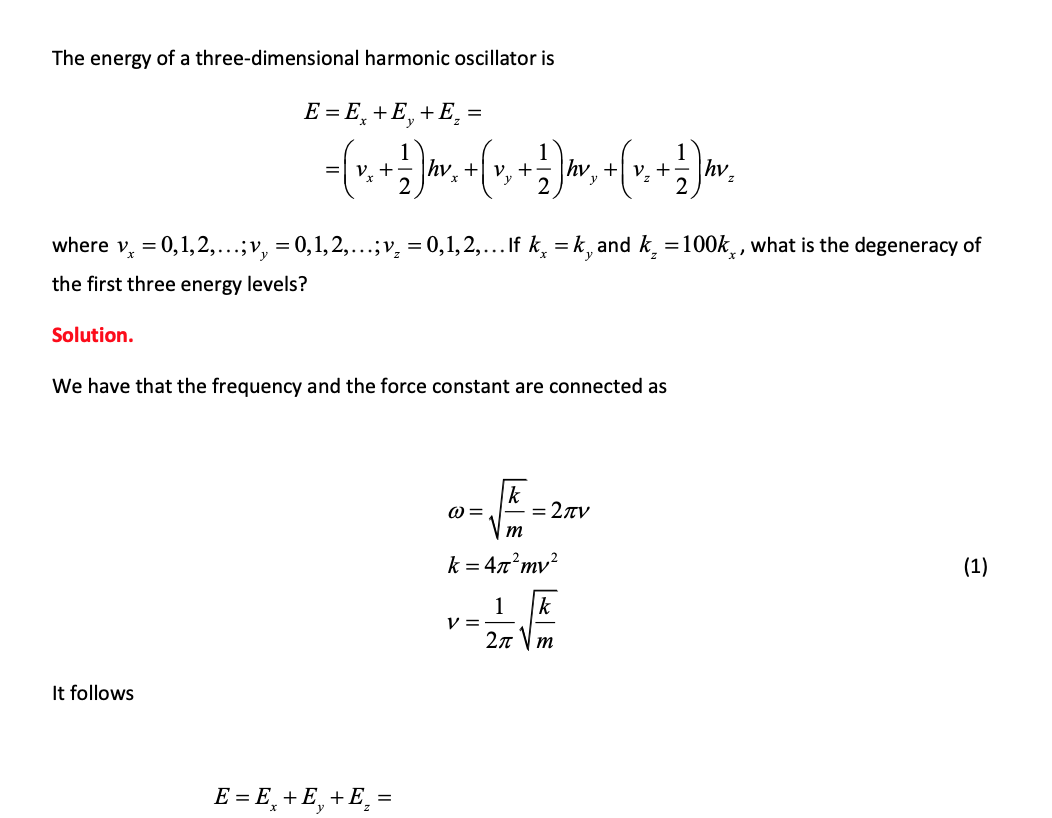 The energy of a three-dimensional harmonic oscillator is E = Ex +...