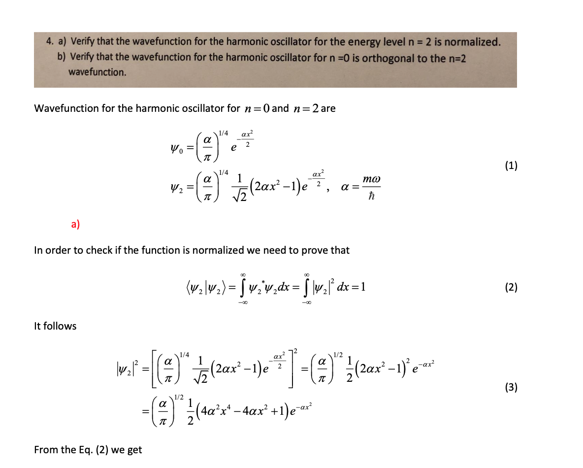 4. a) Verify that the wavefunction for the harmonic oscillator fo...