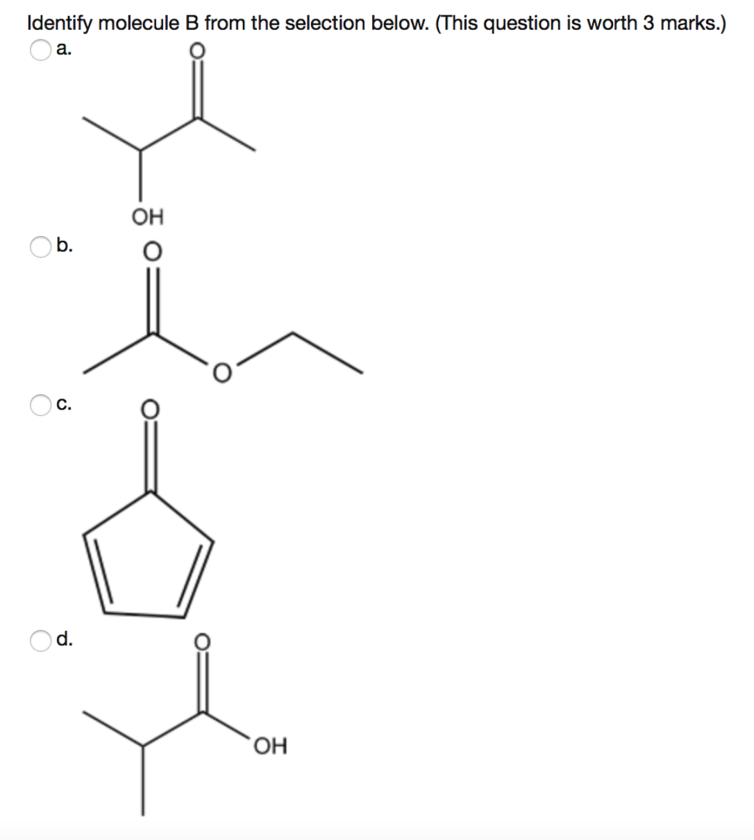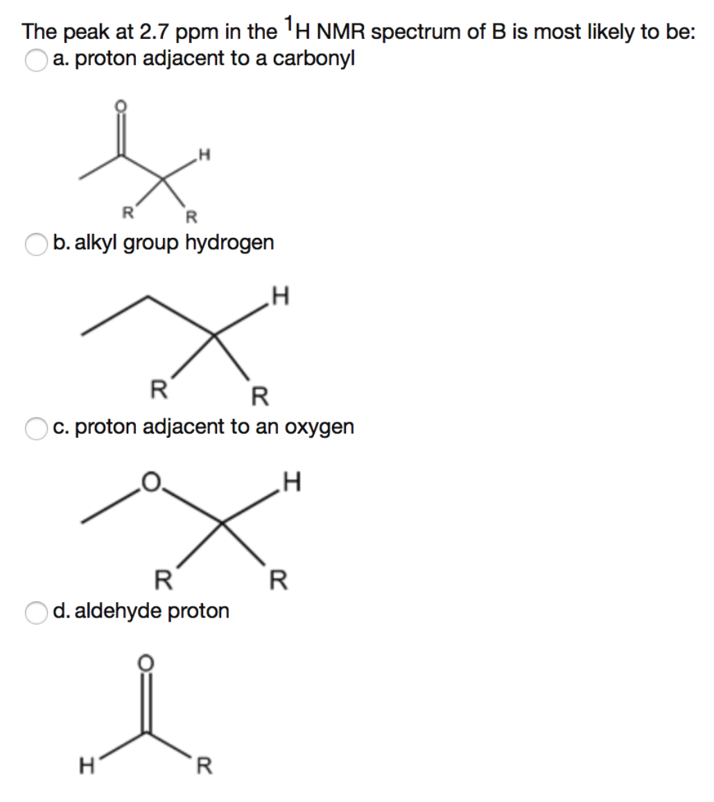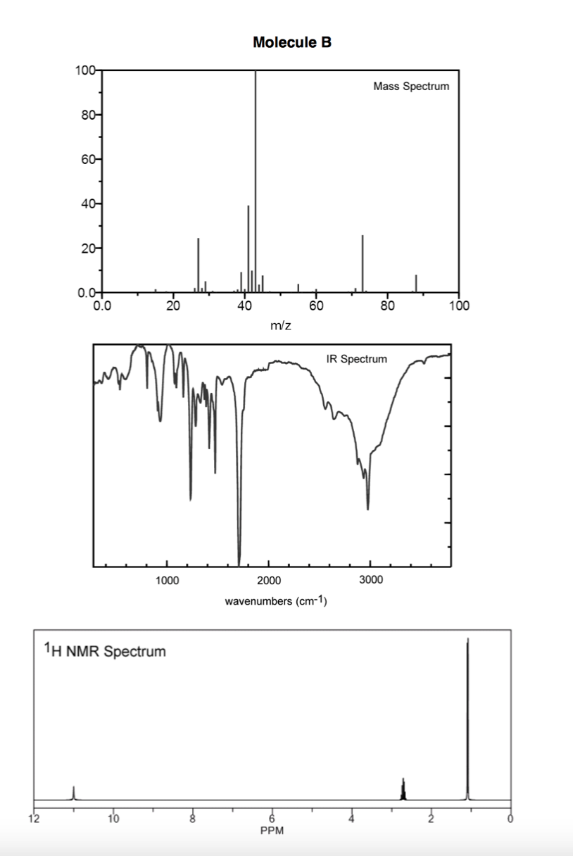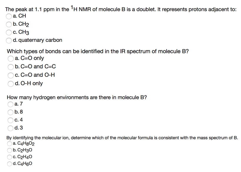 The peak at 1.1 ppm in the 1 H NMR of molecule B is a doublet. It r...