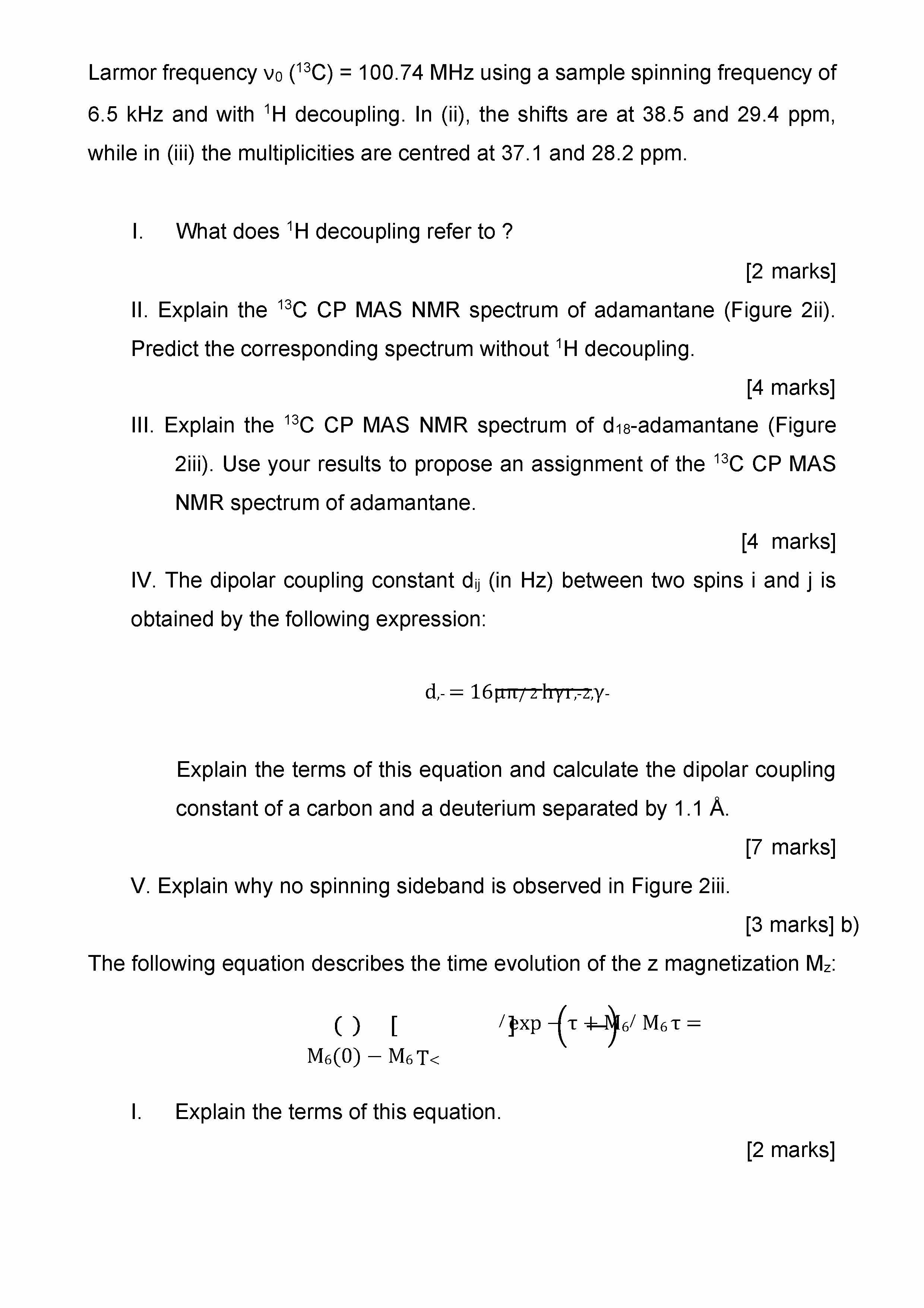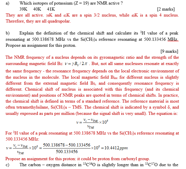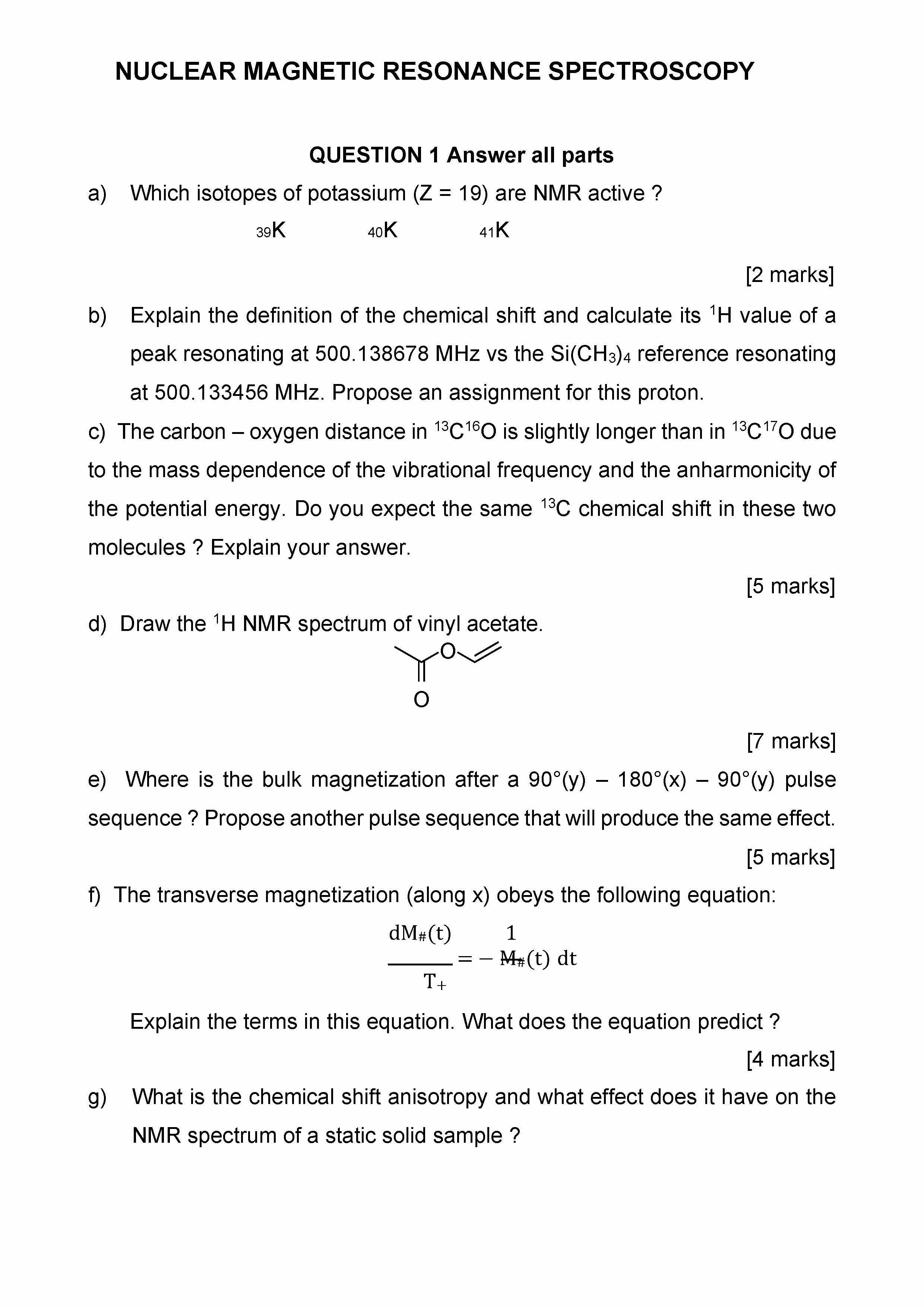 NUCLEAR MAGNETIC RESONANCE SPECTROSCOPY QUESTION 1 Answer all part...