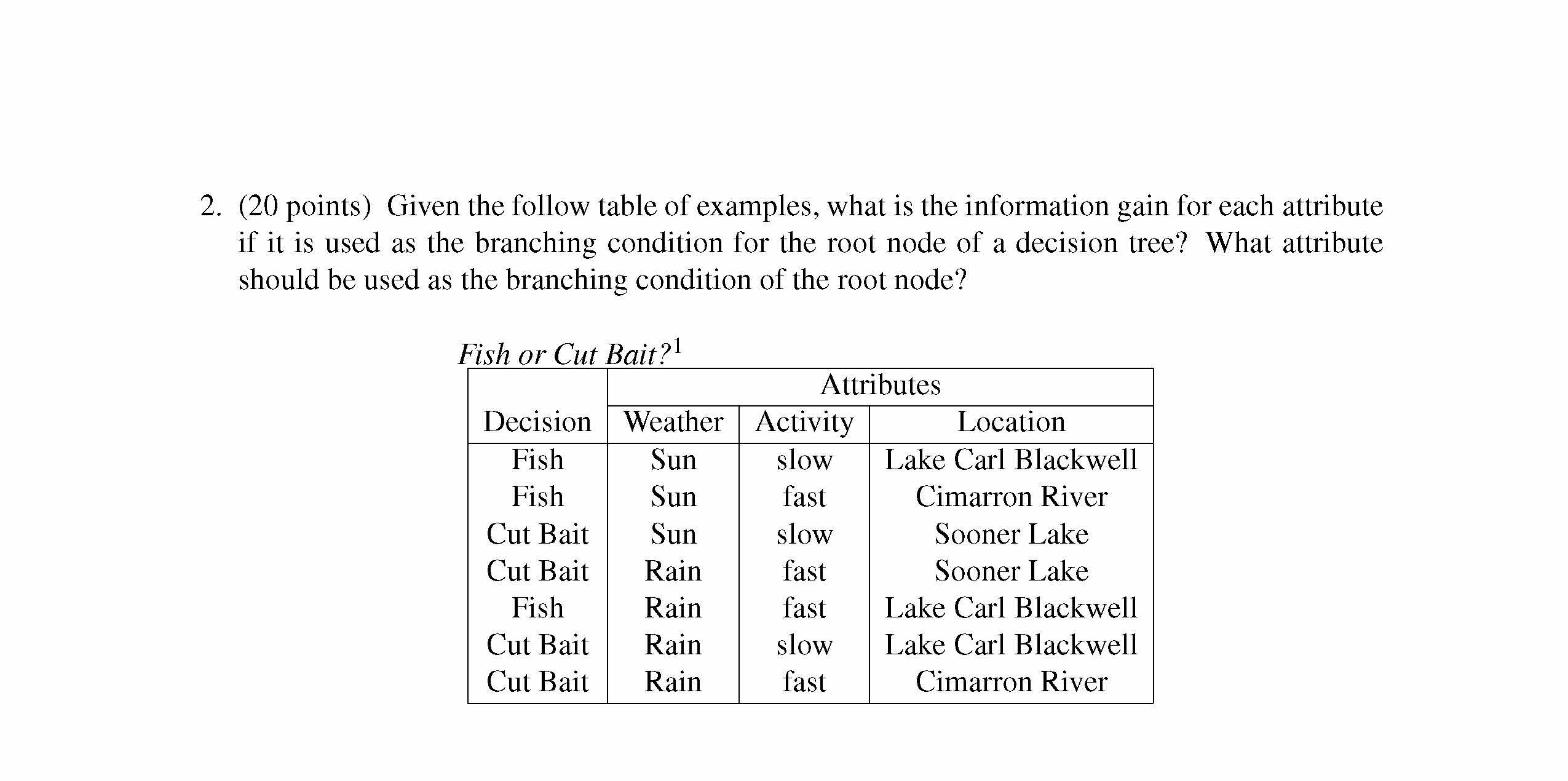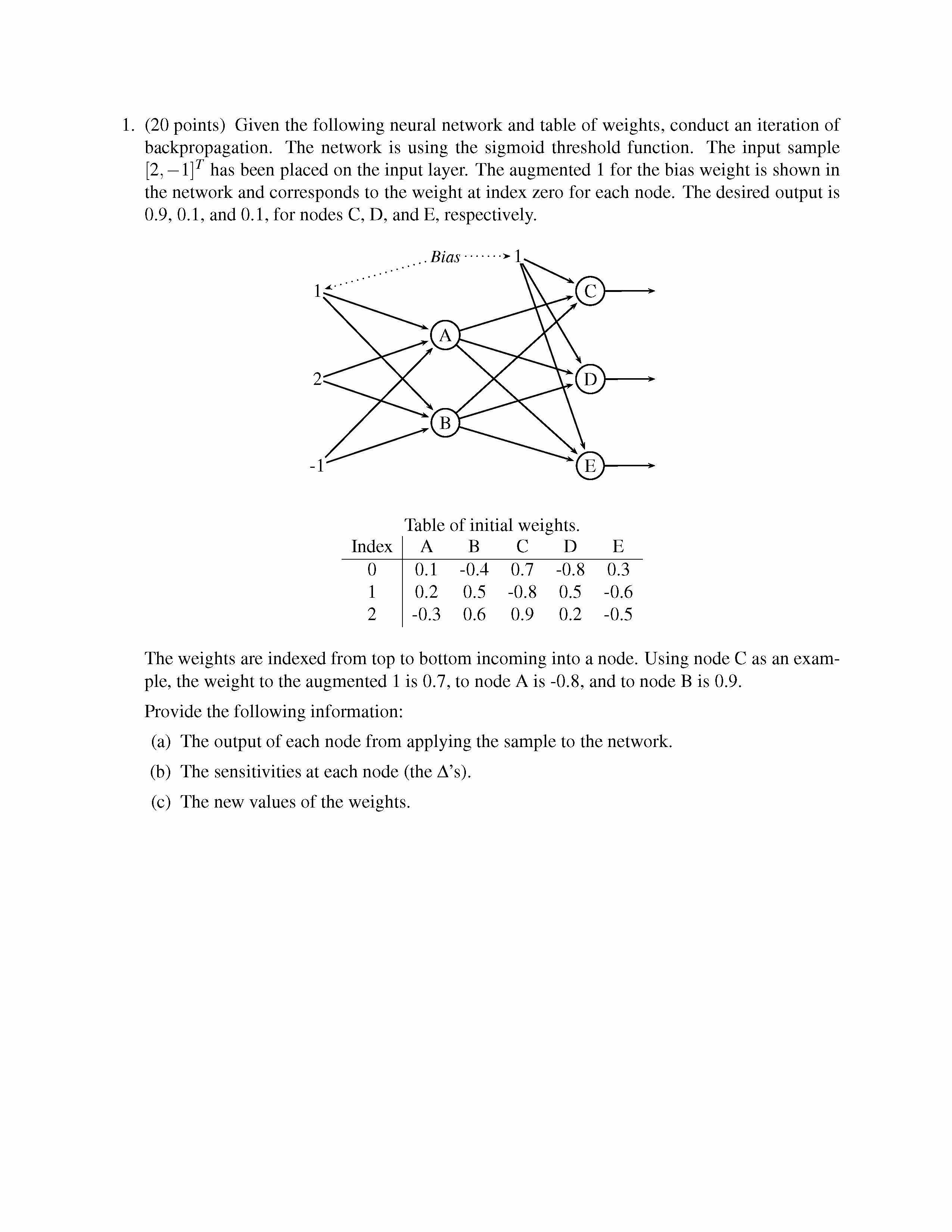 1. (20 points) Given the following neural network and table of weig...