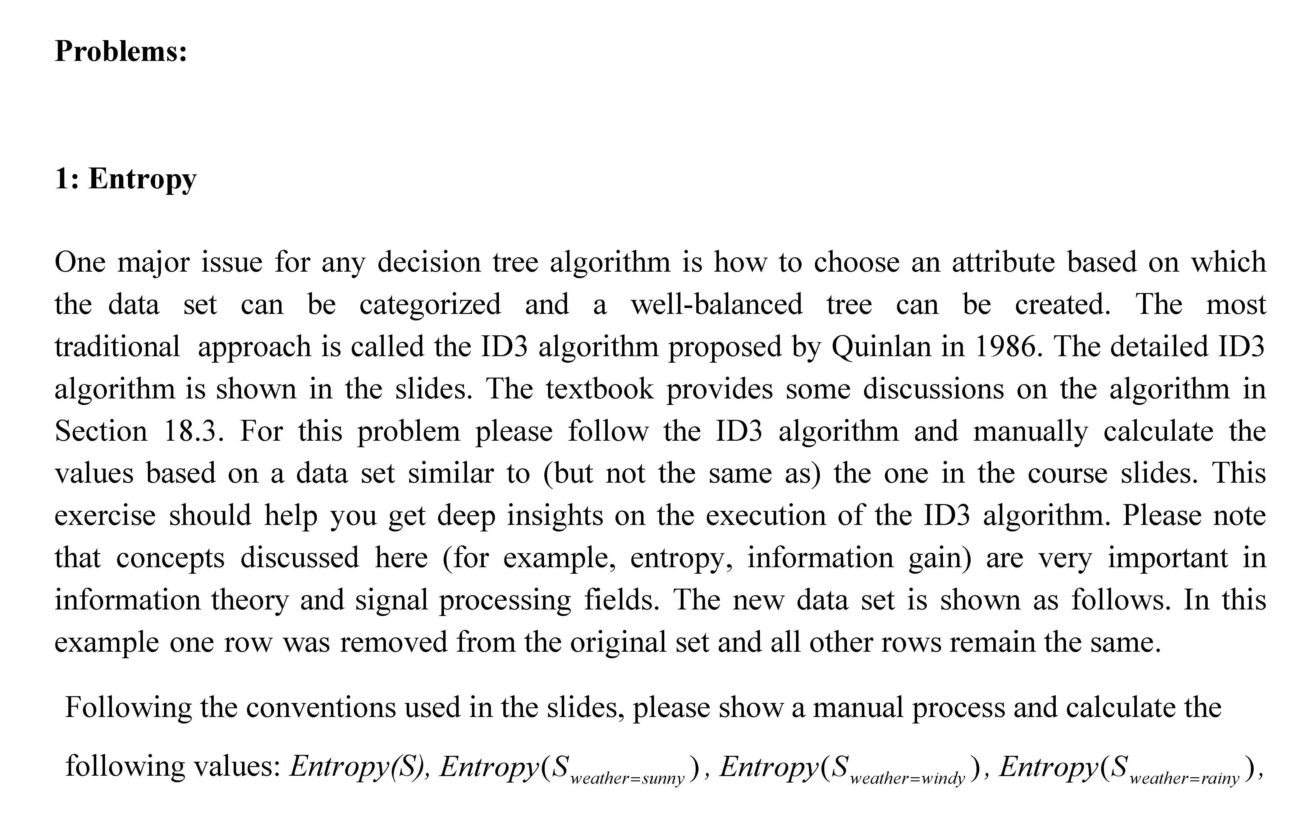 Problems: 1: Entropy One major issue for any decision tree algori...
