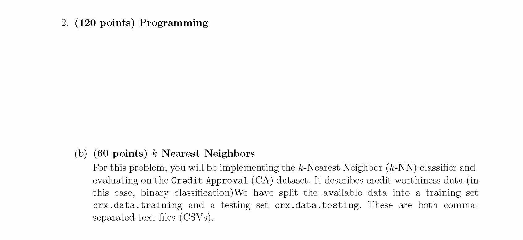 2. (120 points) Programming (b) (60 points) Nearest Neighbors For...