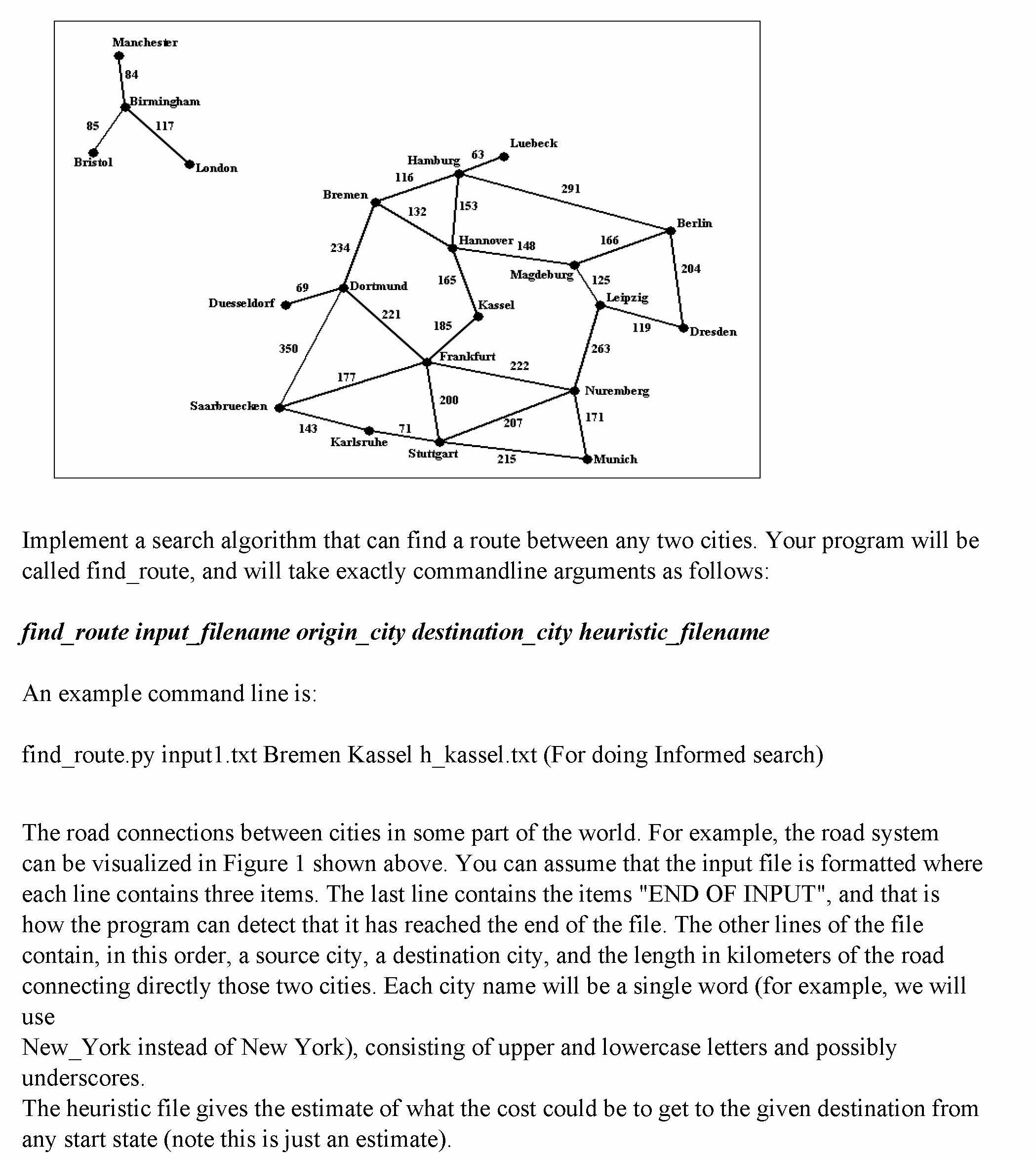 Implement a search algorithm that can find a route between any two ...