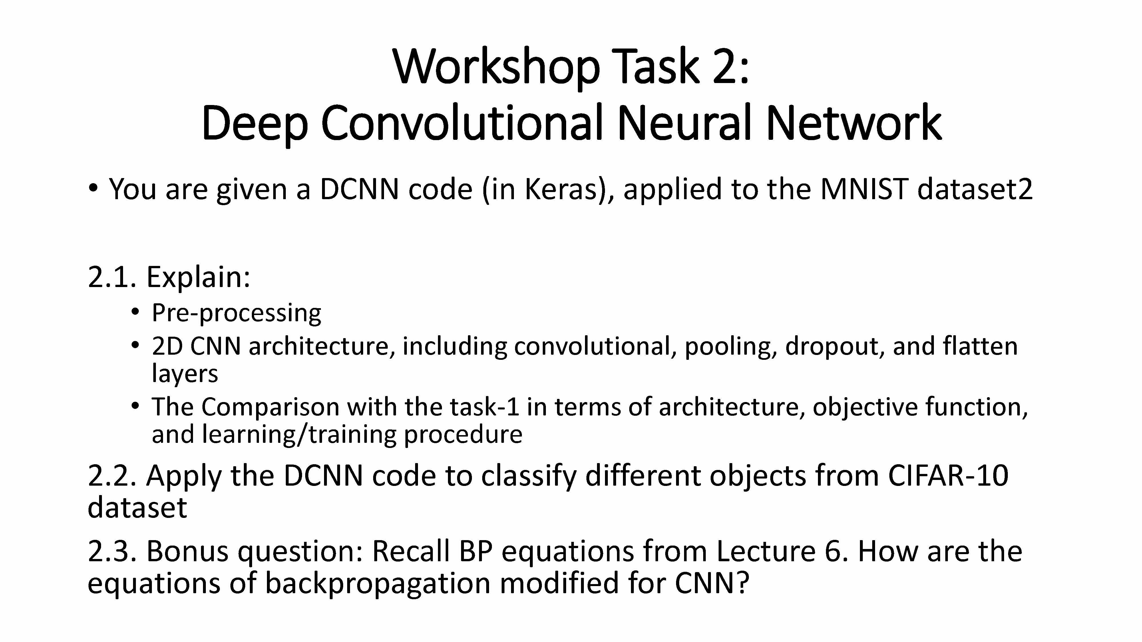 Workshop Task 1 deep neural network 1. Recall Lecture 6. Run the...