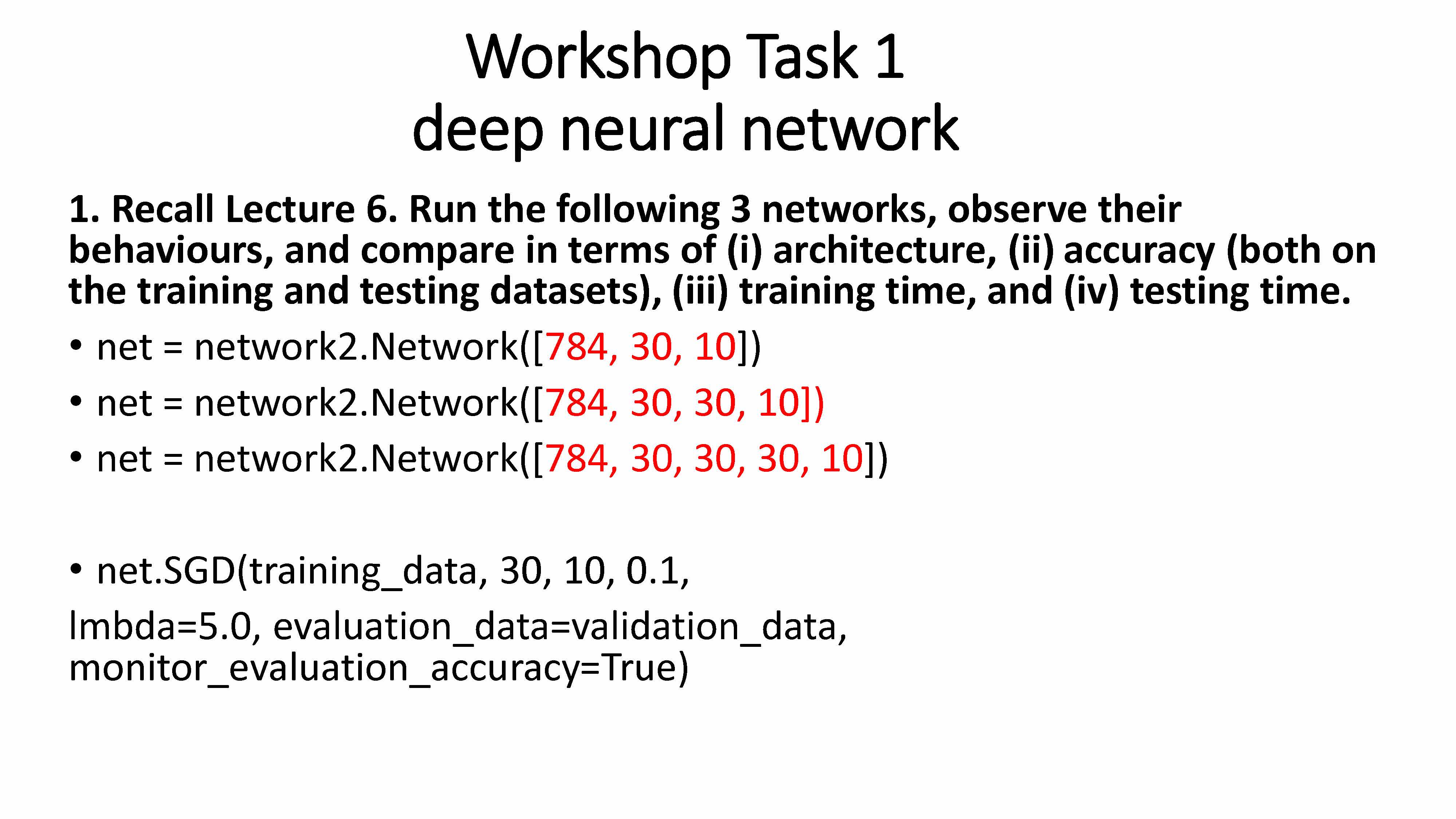 Workshop Task 1 deep neural network 1. Recall Lecture 6. Run the ...