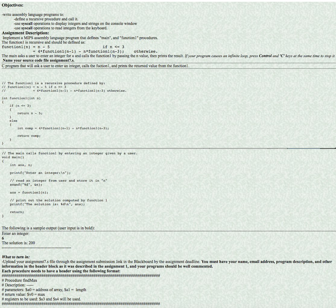 Objectives: -write assembly language programs to: -define a recur...