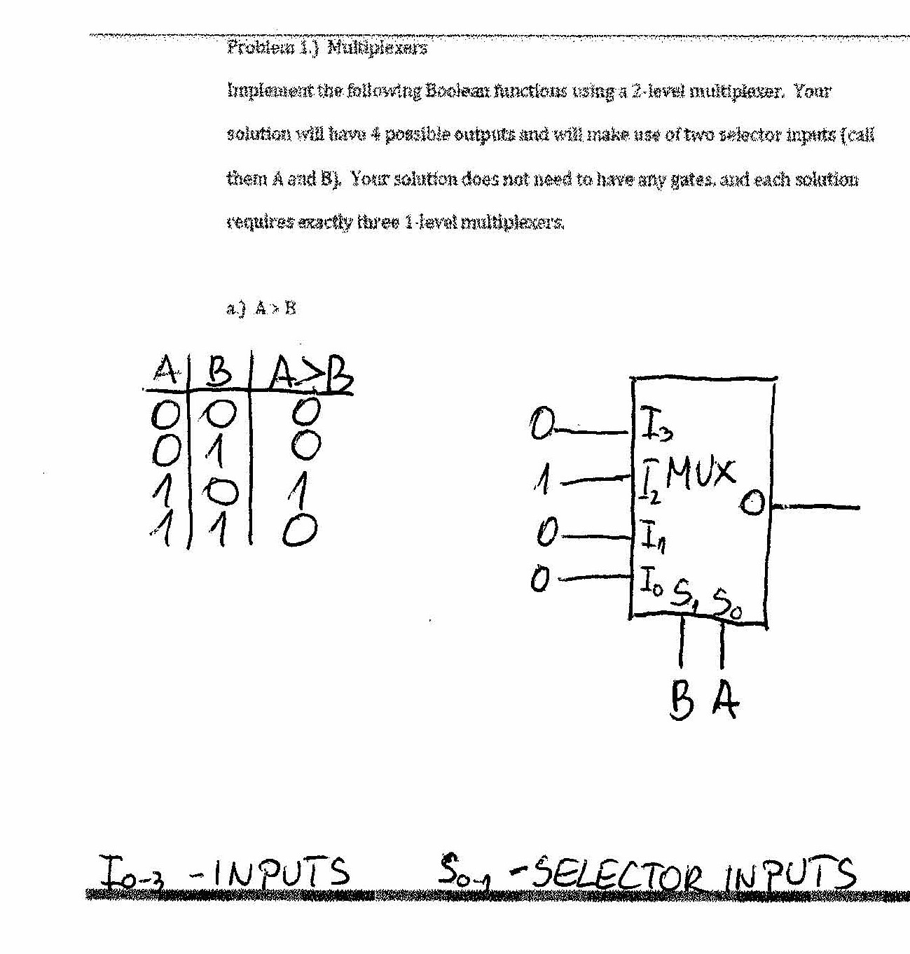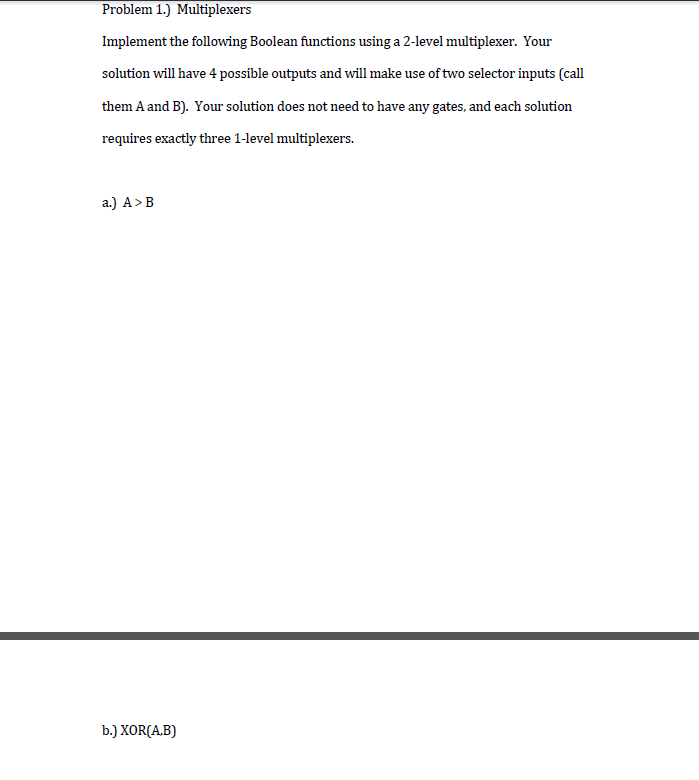 Problem 1.) Multiplexers Implement the following Boolean functions...